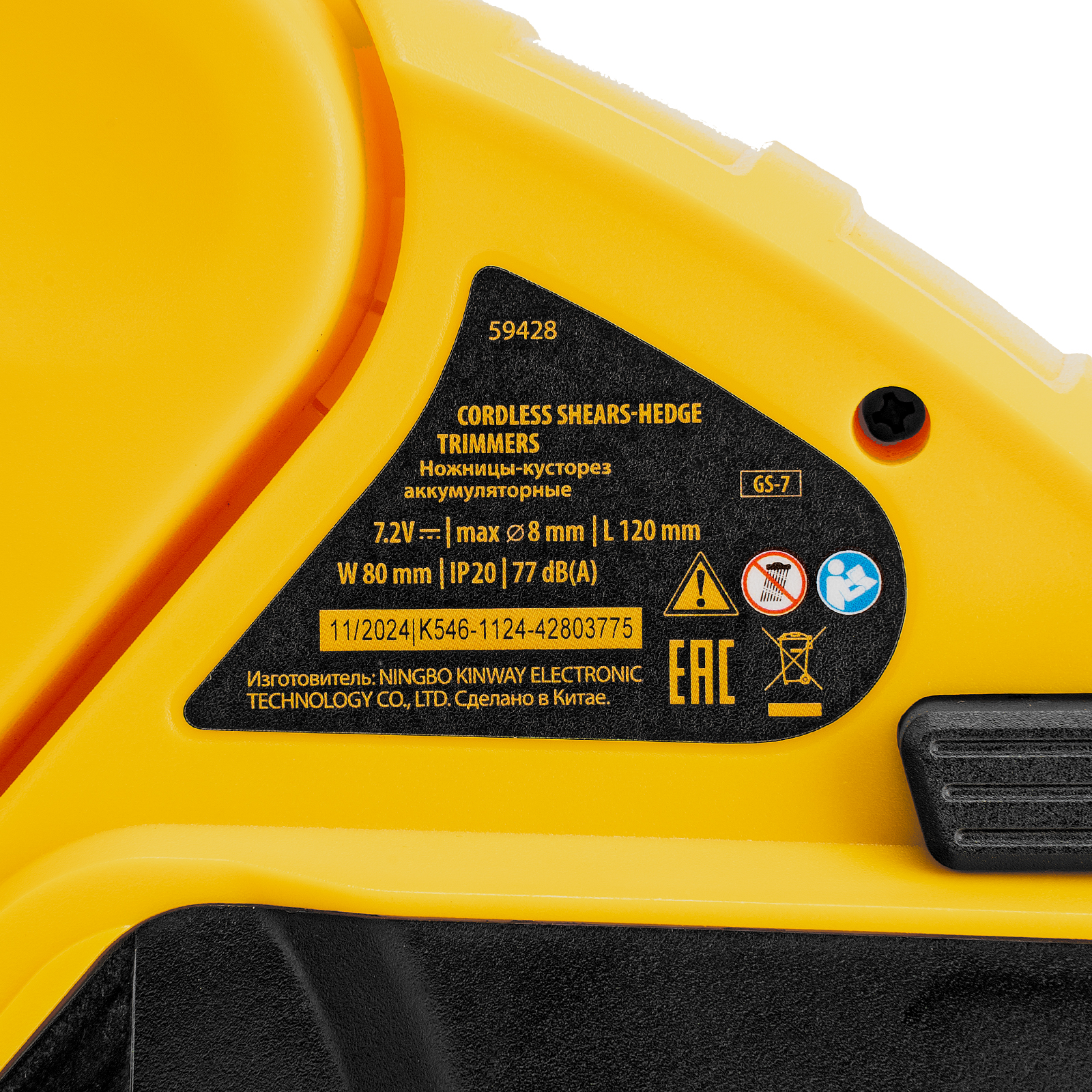 Ножницы-кусторез аккумуляторные GS-7, Li-Ion, 7,2 В Denzel