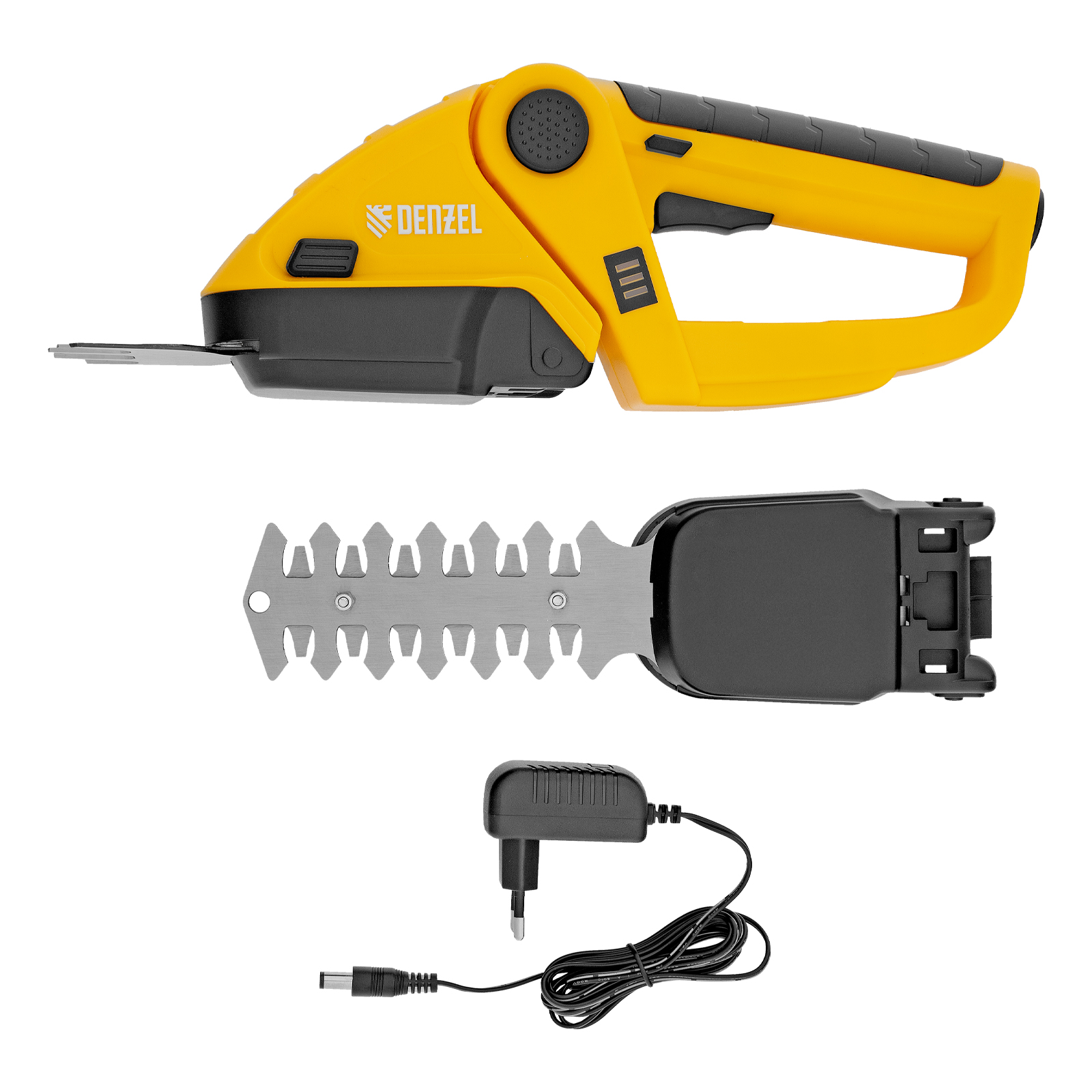 Ножницы-кусторез аккумуляторные - 1 штЛезвия для травы - 1 штЛезвия для кустарников - 1 штЗарядное устройство - 1 штРуководство по эксплуатации c гарантийным талоном - 1 штМодуль для подстригания травы - 1 штМодуль для ухода за кустами - 1 шт |