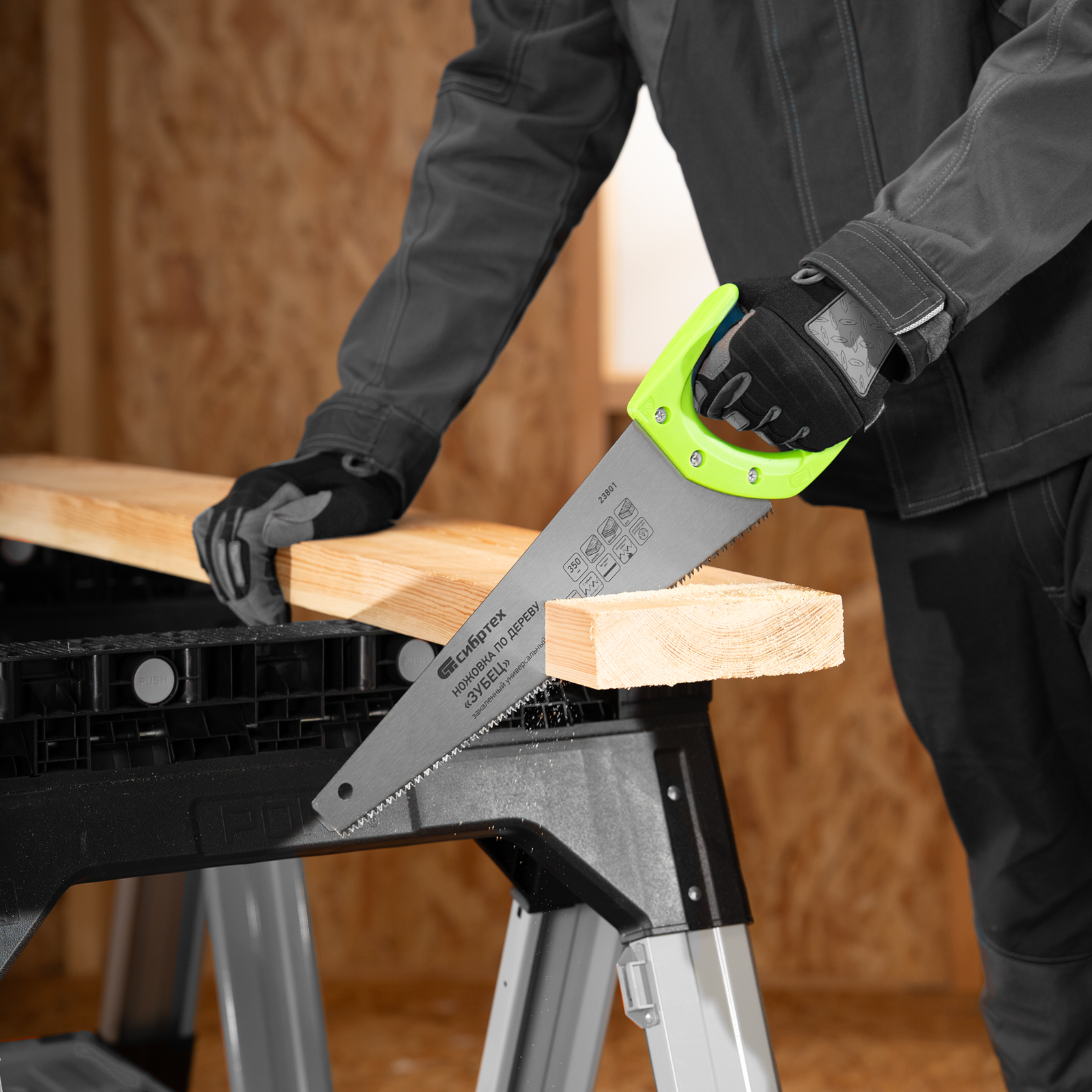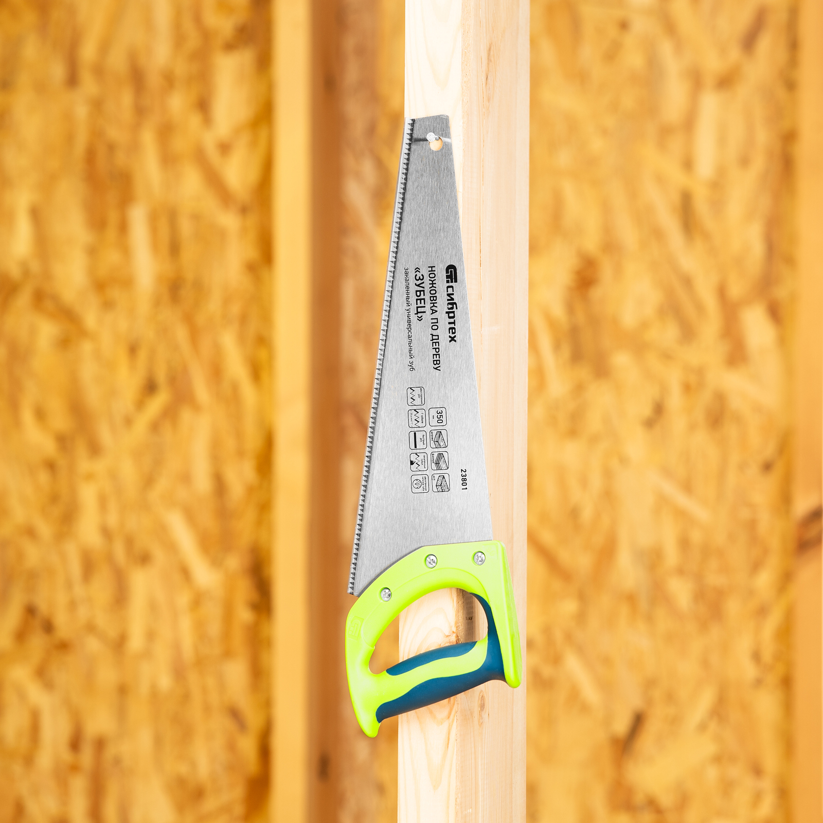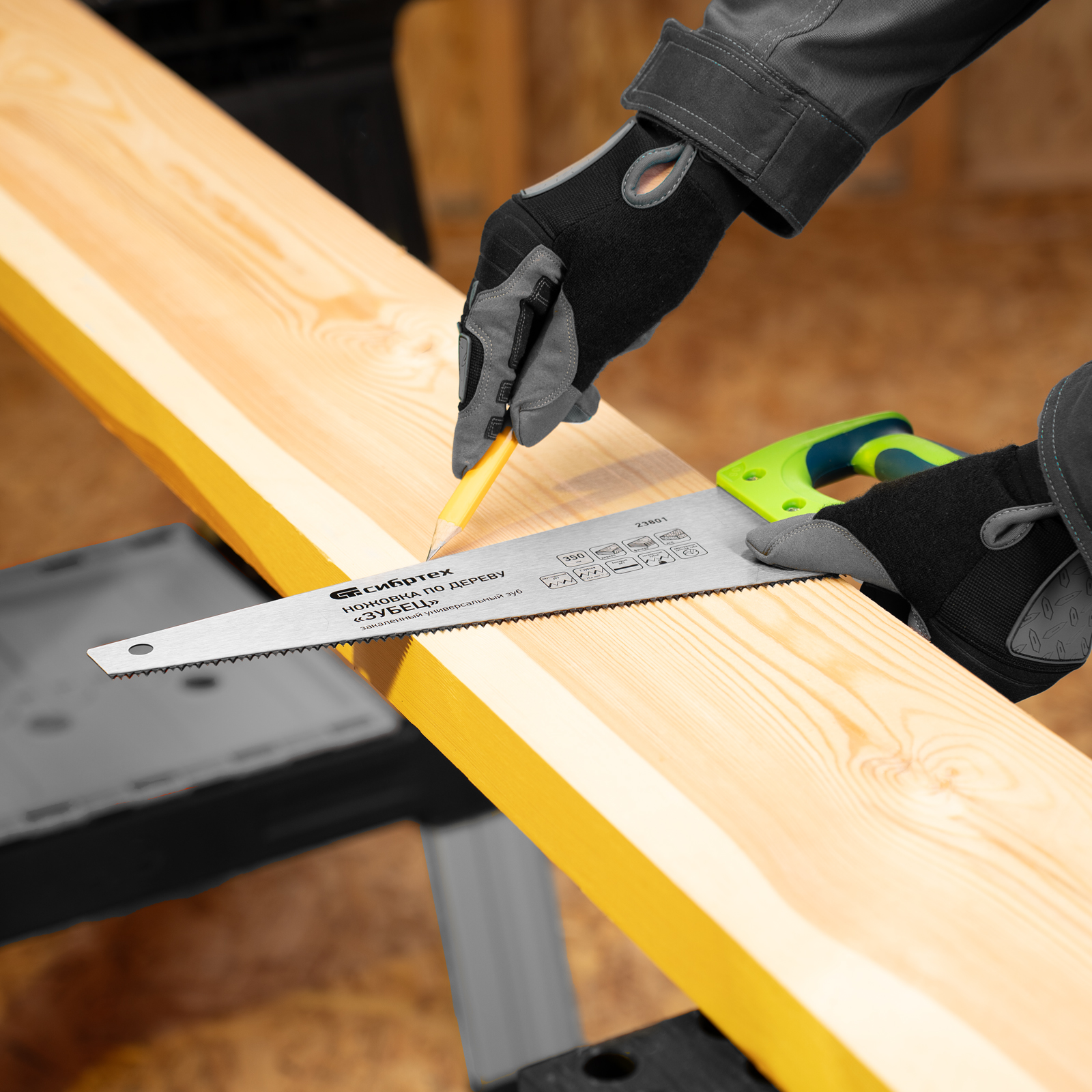 Ножовка по дереву "Зубец", 350 мм, 7-8 TPI, каленый зуб 2D, двухкомпонентная рукоятка Сибртех
