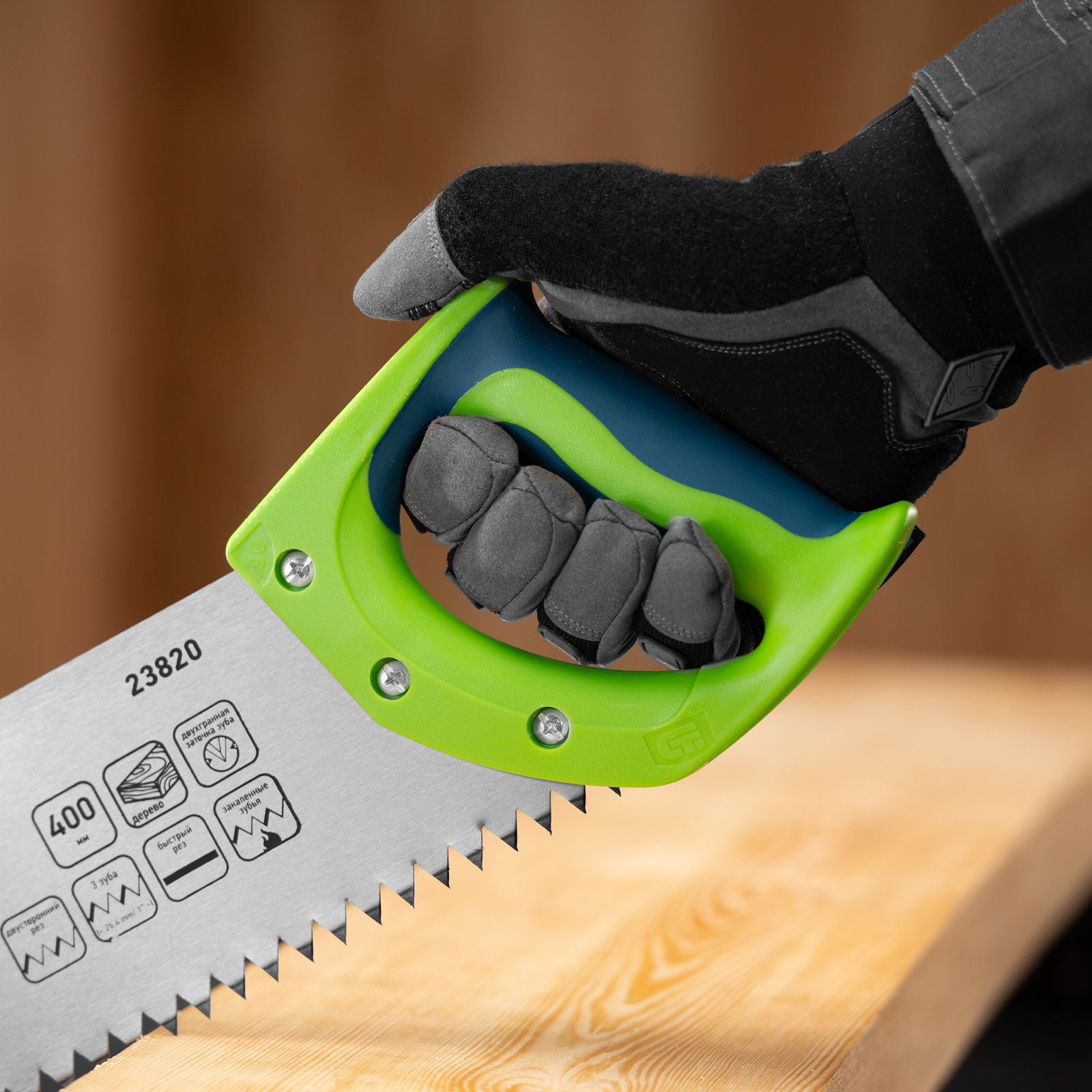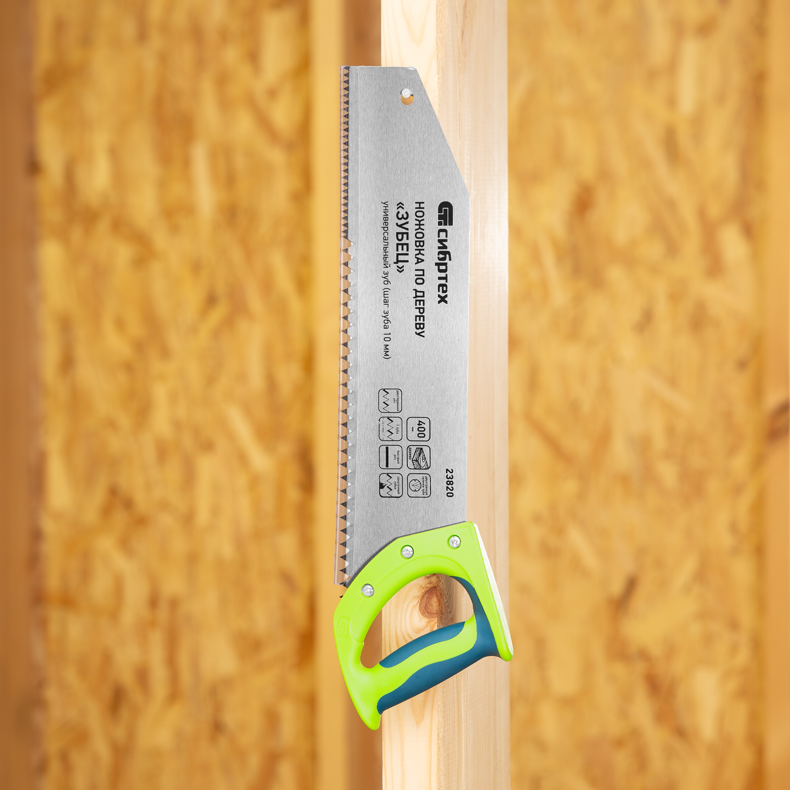 Ножовка по дереву "Зубец", 400 мм, шаг зуба 10 мм, каленый зуб 2D, двухкомпонентная рукоятка Сибртех