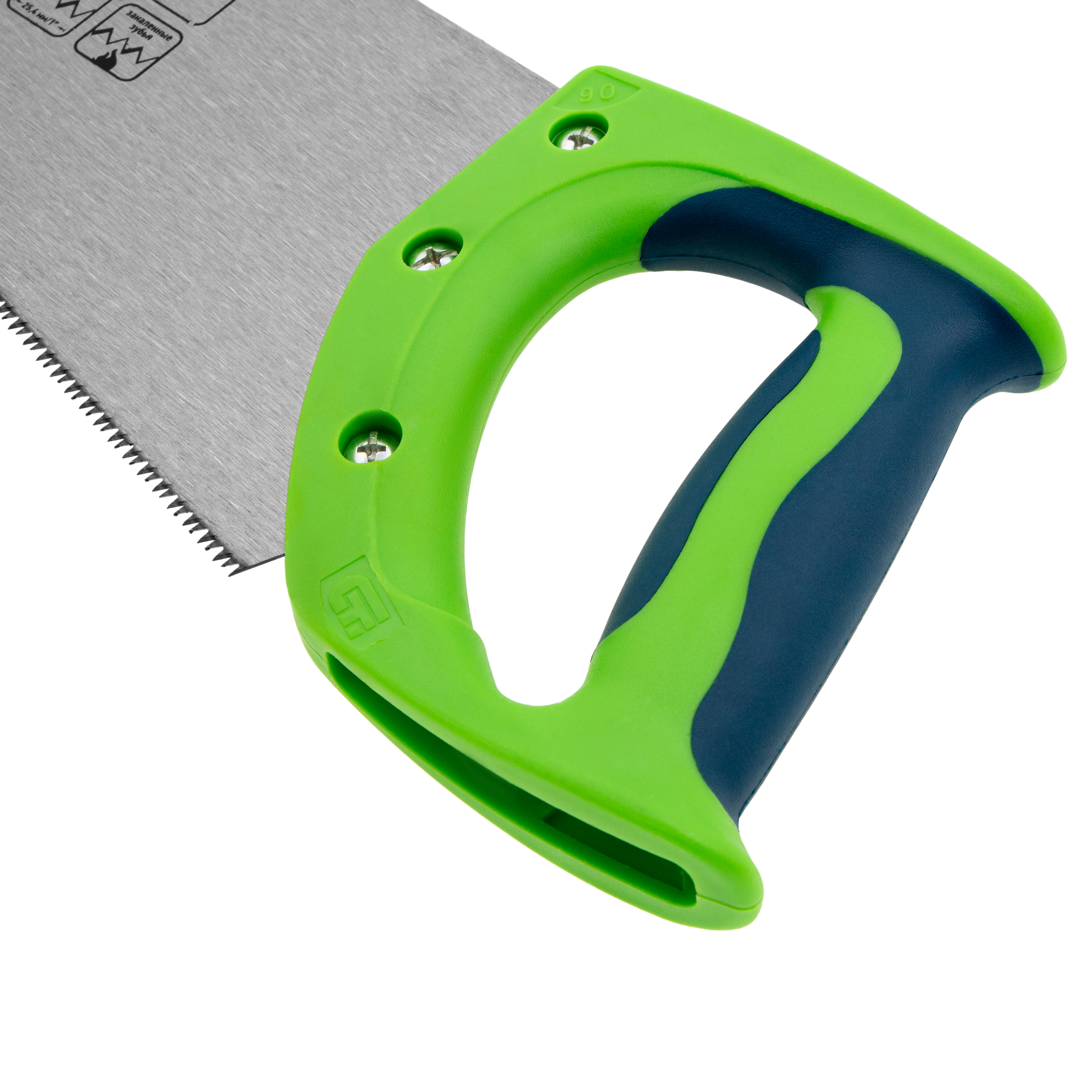 - Рукоятка из ударопрочного пластика прикреплена к полотну 3 винтами, что придает конструкции надежность.
