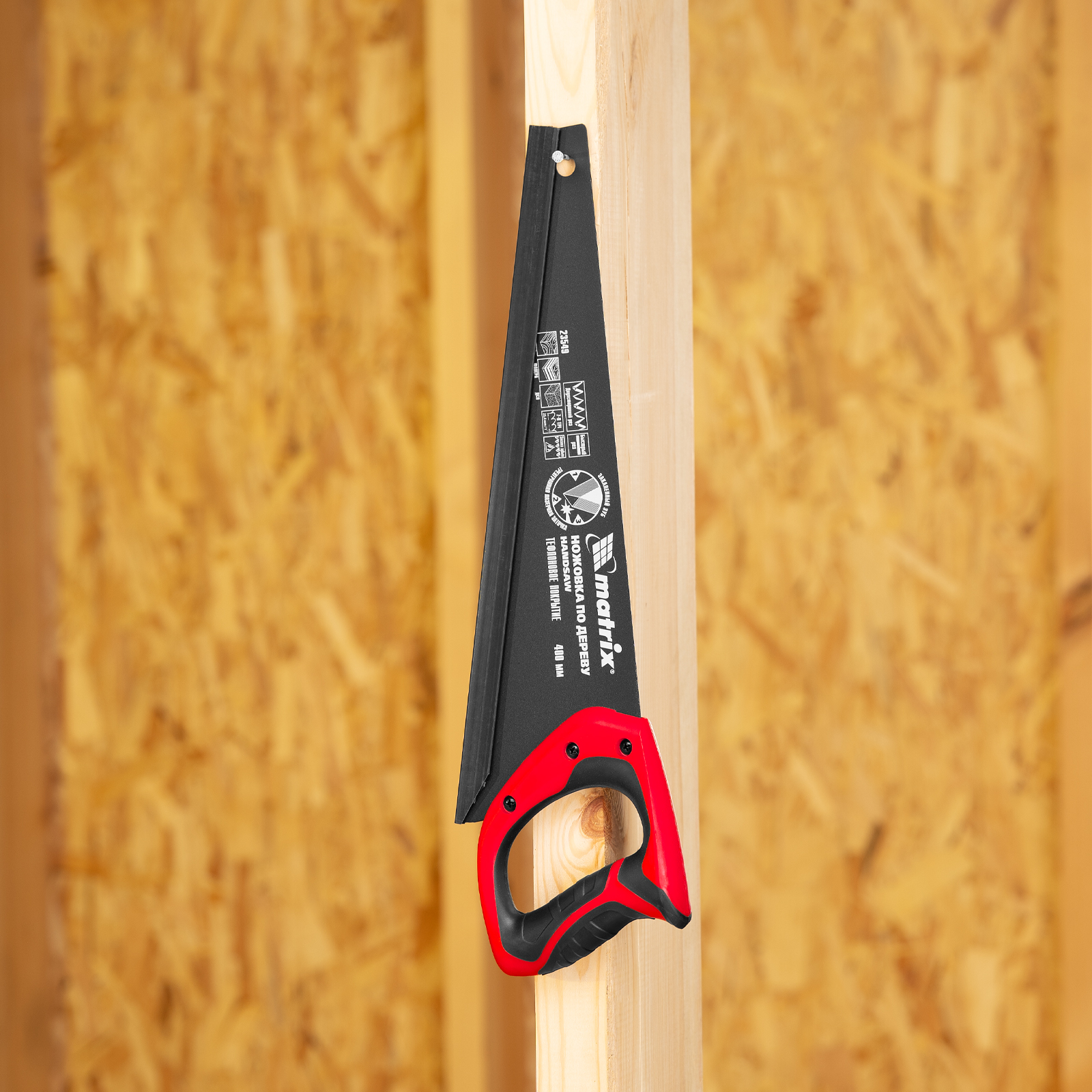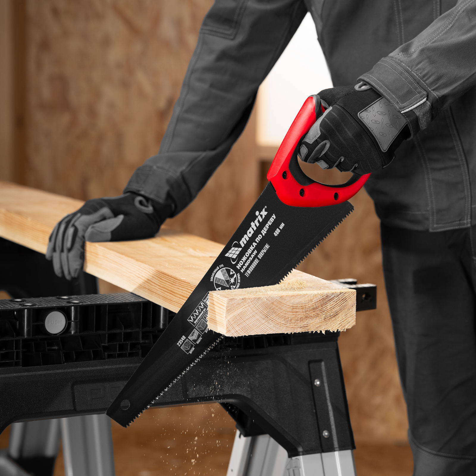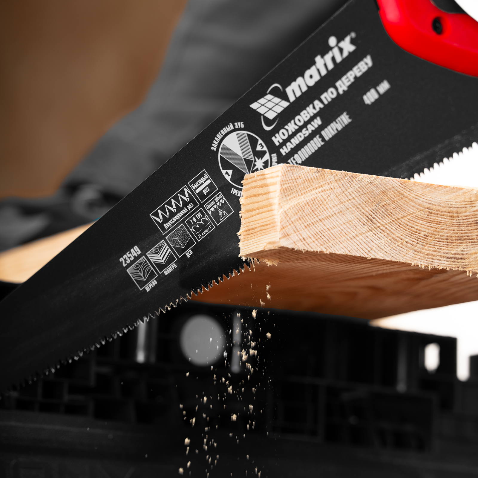 Ножовка по дереву, 400 мм, 7-8 TPI, зуб-3D, каленый зуб, тефлоновое покрытие полотна, двухкомпонентная рукоятка Matrix