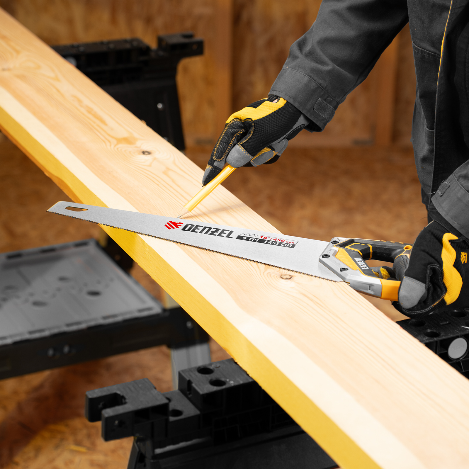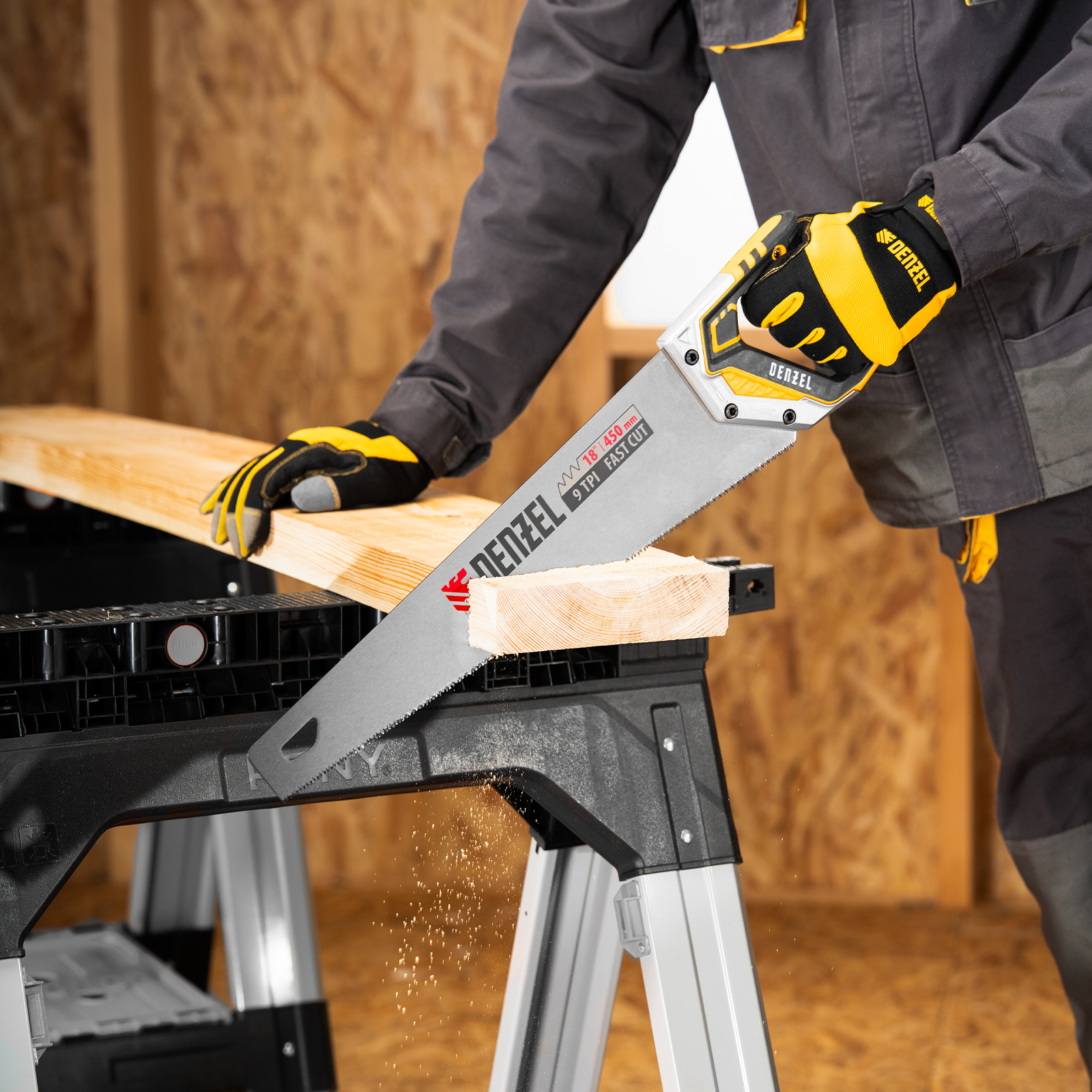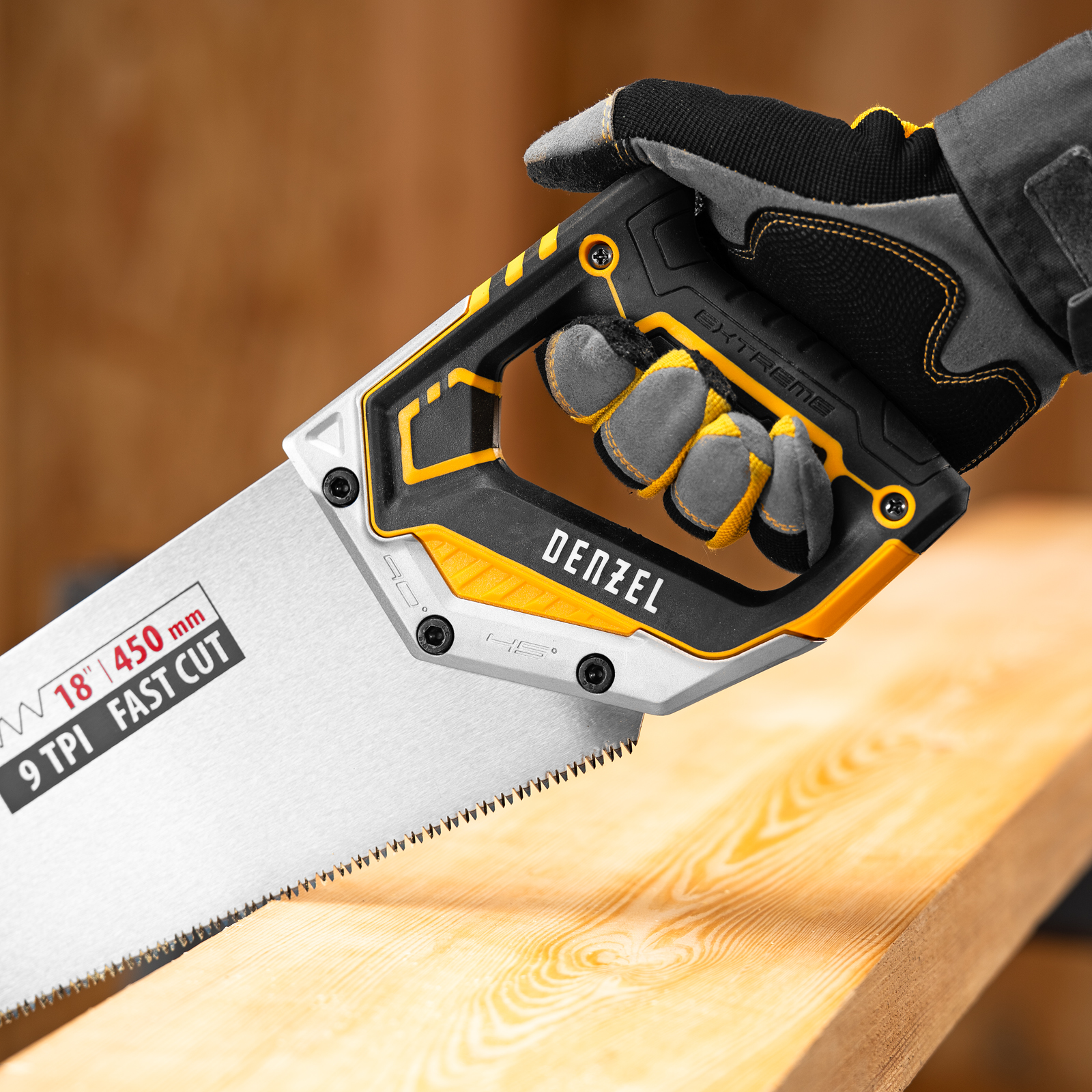 Ножовка по дереву, 450 мм, 9 TPI, зуб 3D, металлопластиковая рукоятка Denzel