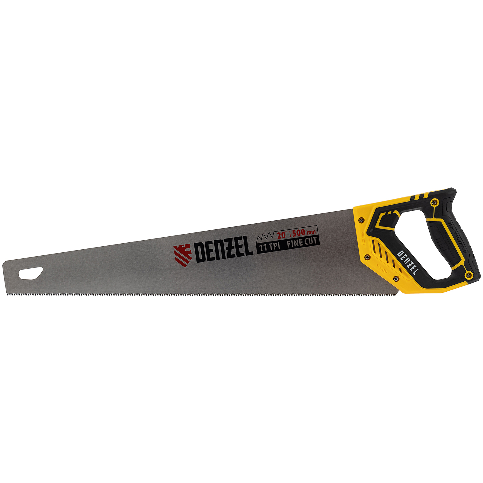 Ножовка по дереву, 500 мм, 11 TPI, зуб 3D, двухкомпонентная рукоятка Denzel