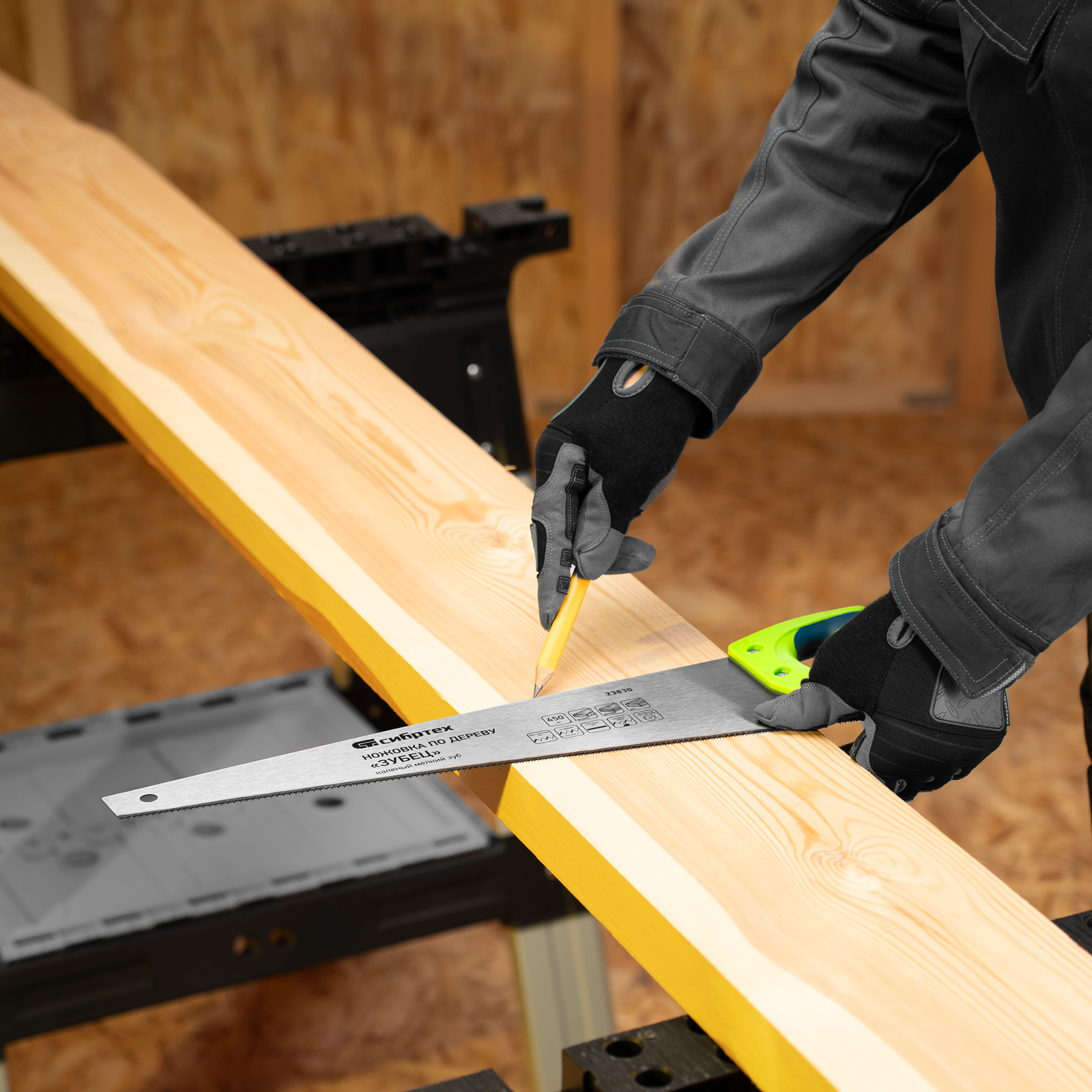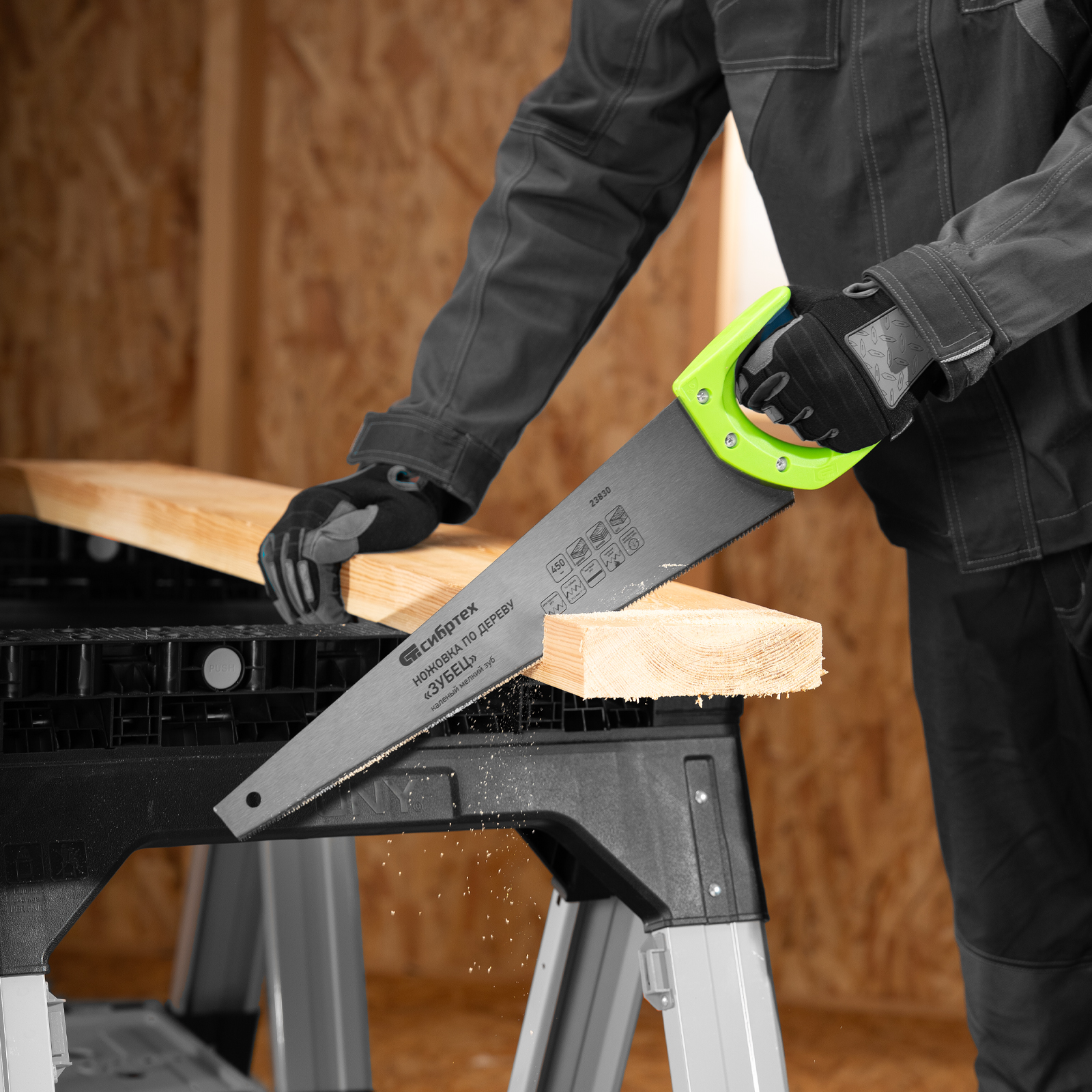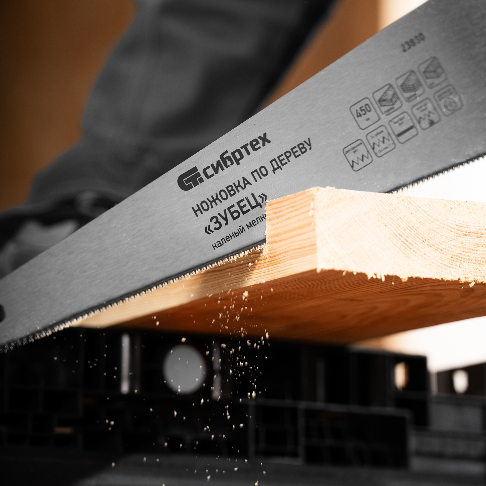 Ножовка по дереву"Зубец" для точных пильных работ, 450 мм, каленый зуб 2D, 14 TPI, двухкомпонентная рукоятка Сибртех