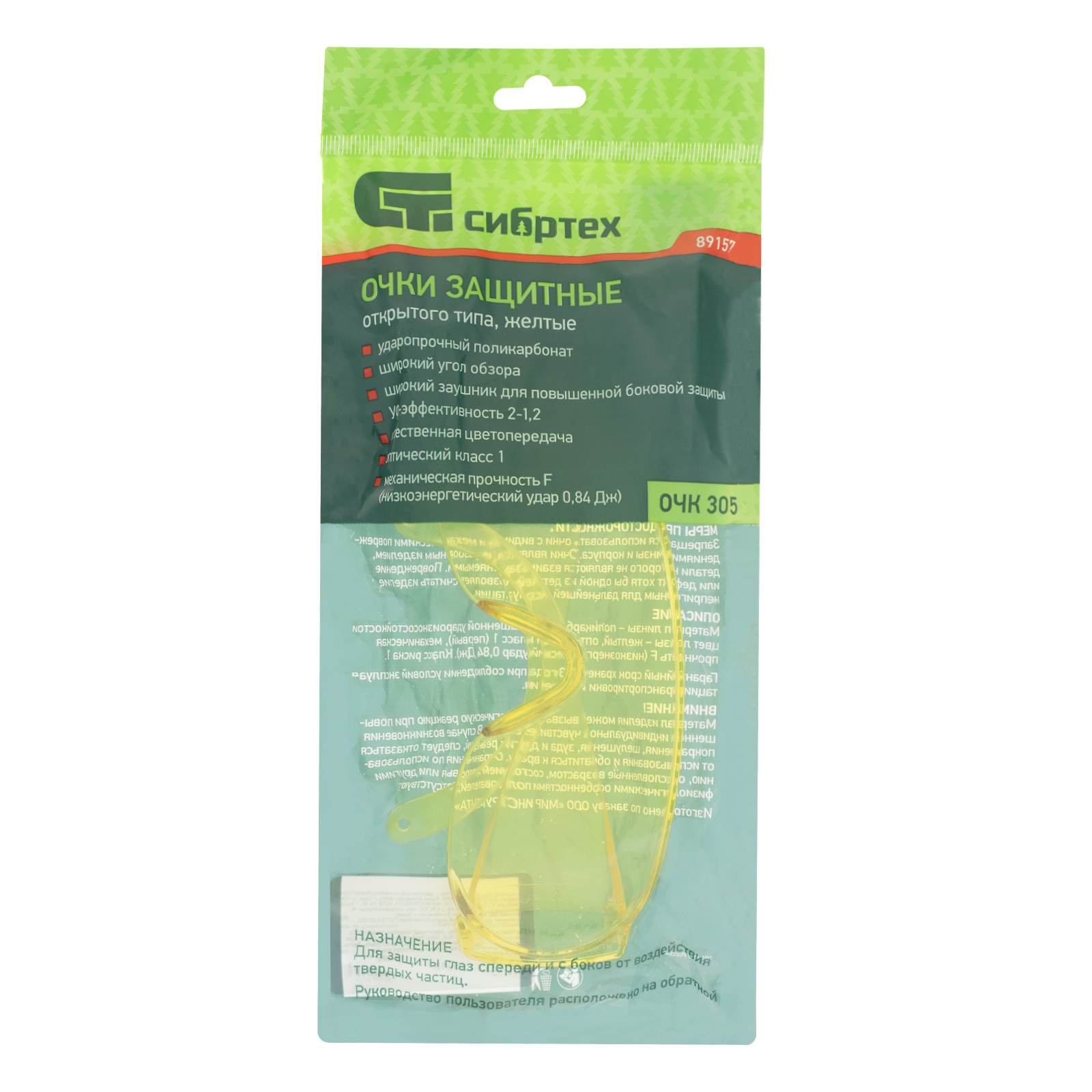 Очки защитные открытого типа, желтые, ударопрочный поликарбонат Сибртех
