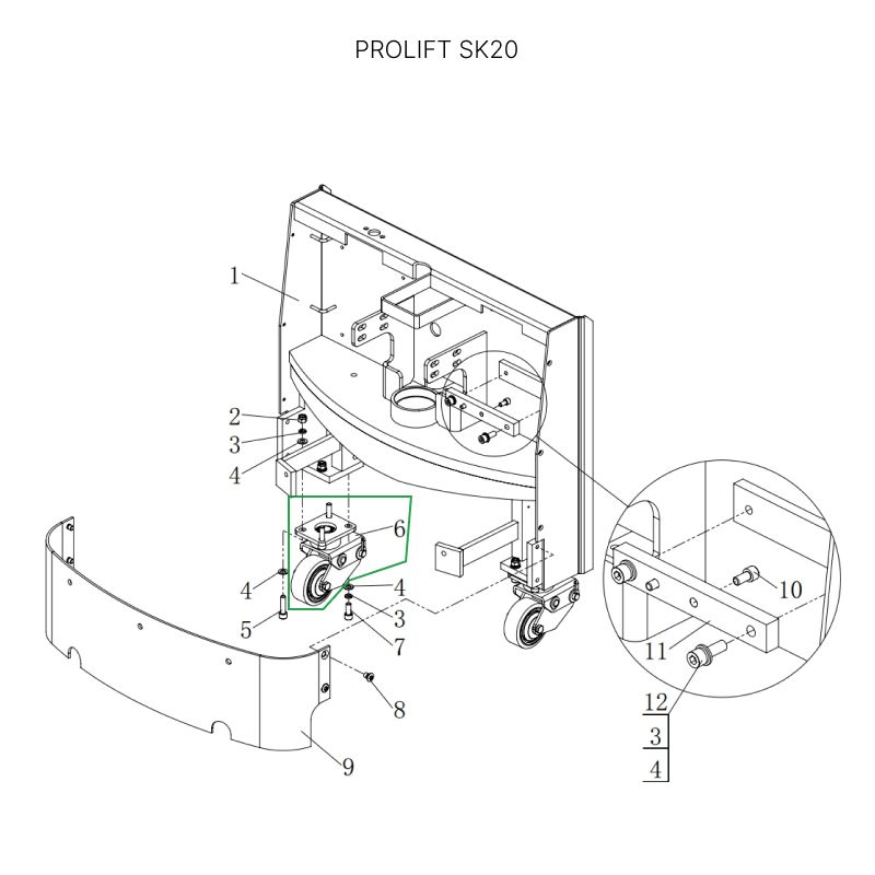 Опорное колесо в сборе с поворотной опорой для тележек SK20