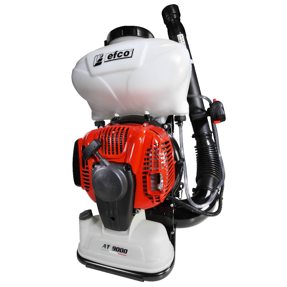 Опрыскиватель бензиновый EFCO AT 9000 функционирует на базе надежного бензинового двигателя рабочим объемом 77 куб. см. и мощностью 5 л.с. Максимальная скорость воздушного потока составляет 105 м/с.