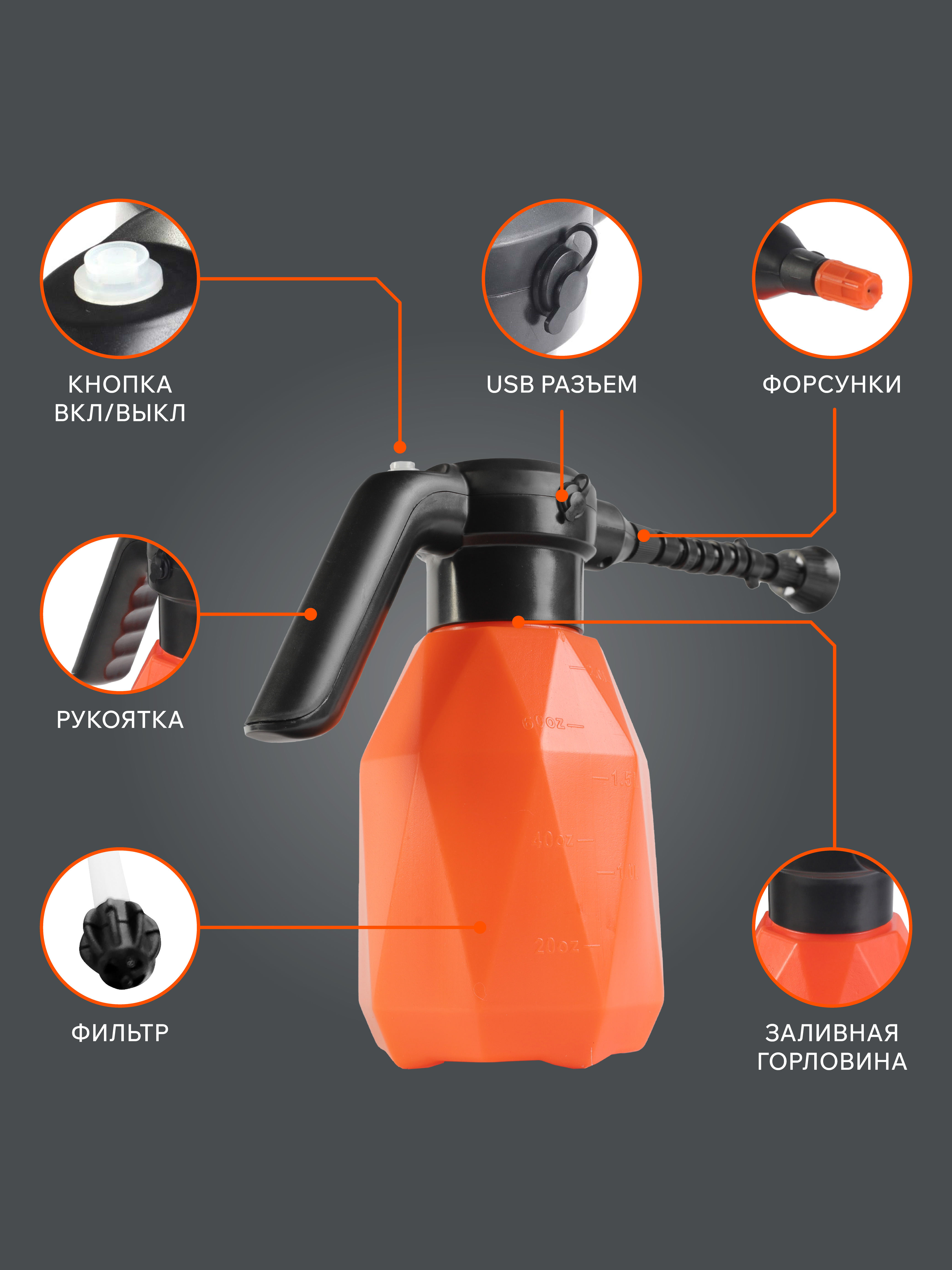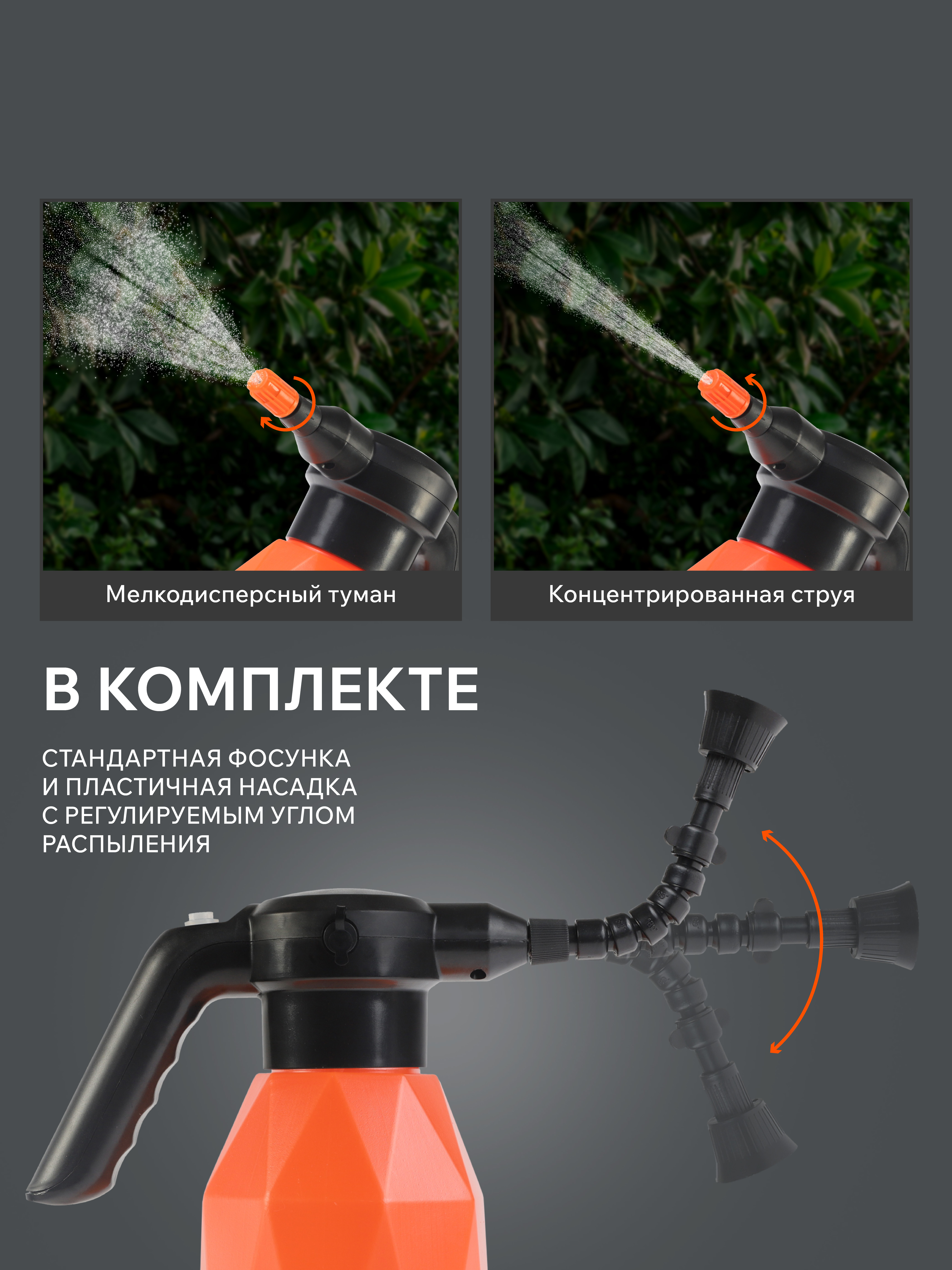 Опрыскиватель; Кабель зарядки; Распылительные насадки: 2 шт.; Инструкция по эксплуатации |