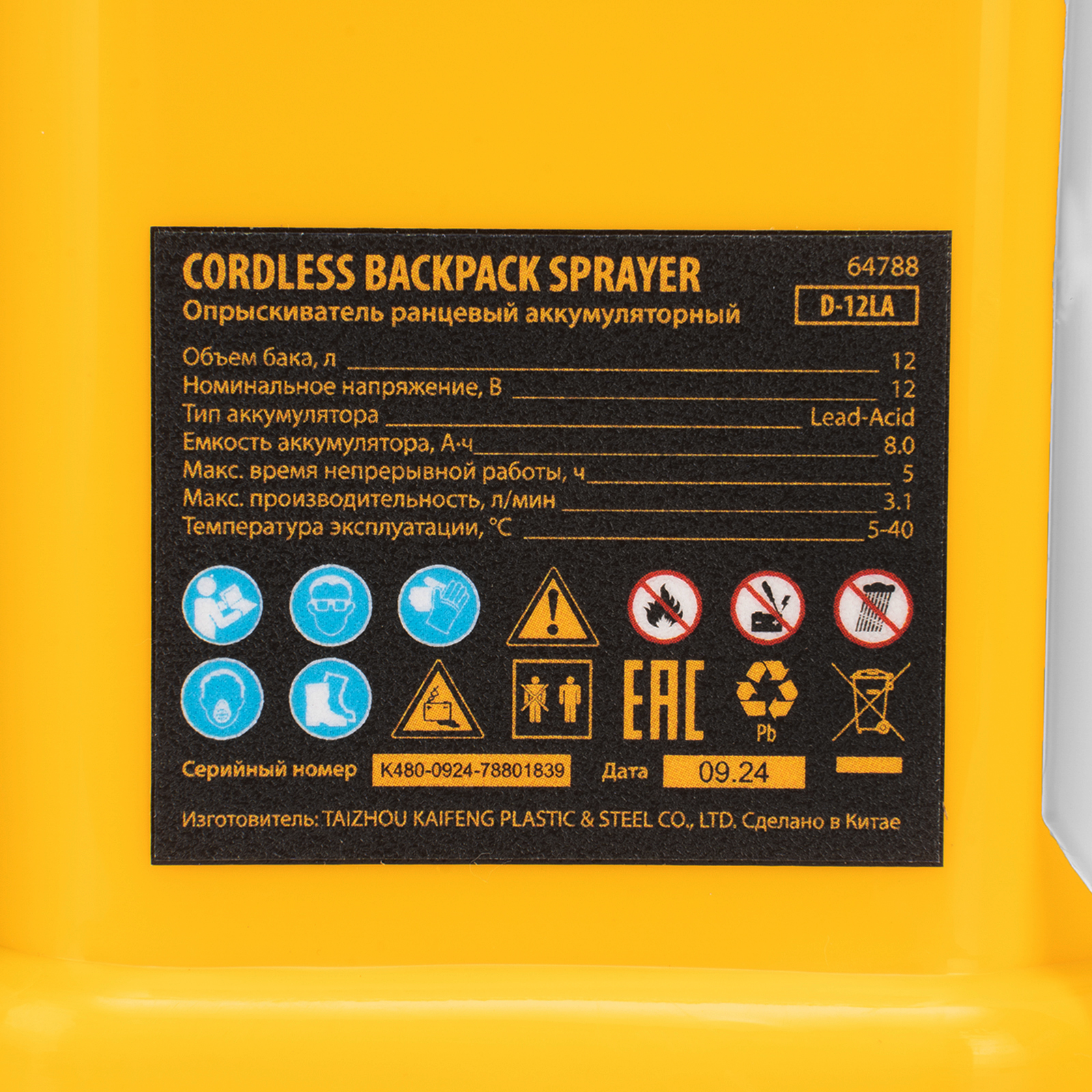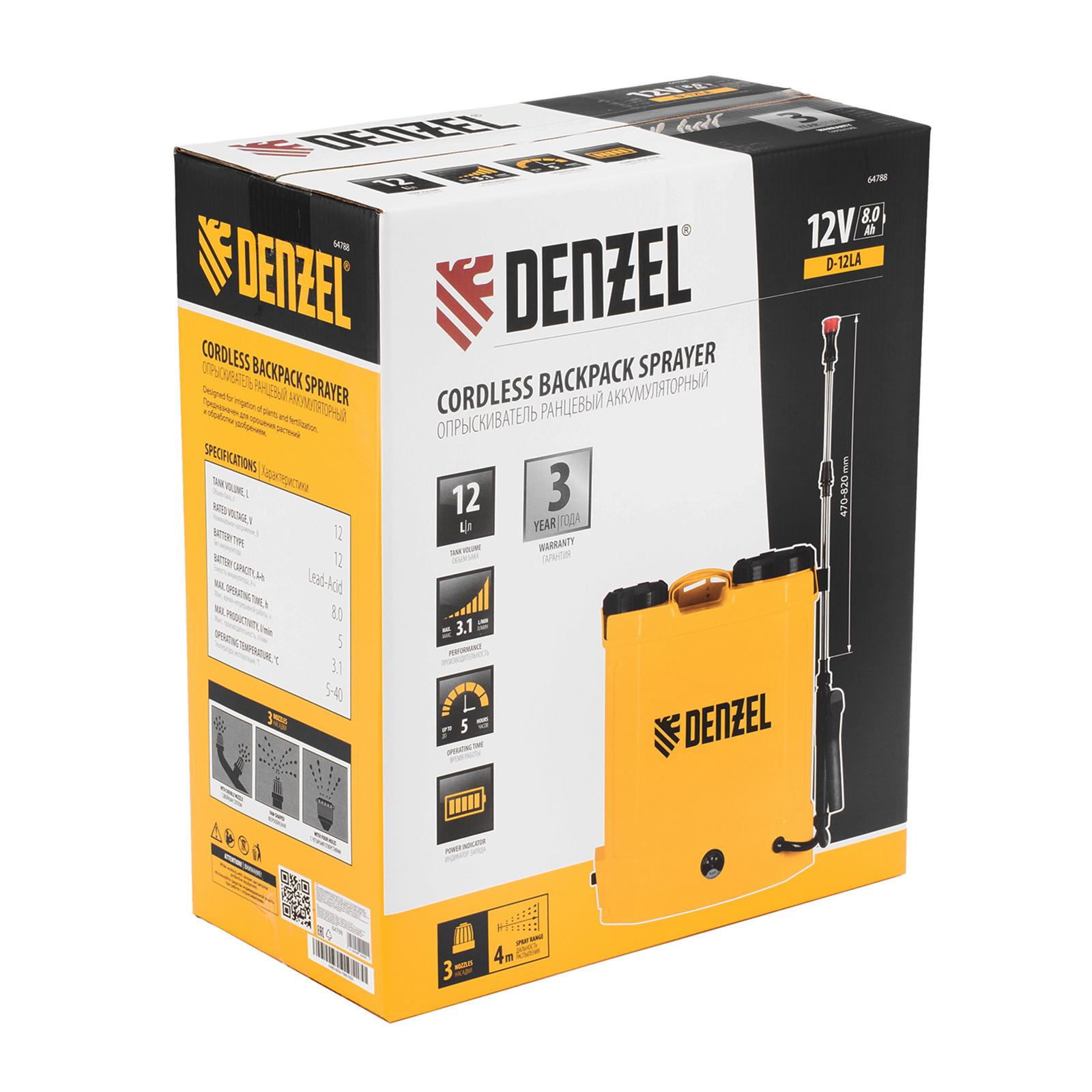 Опрыскиватель ранцевый аккумуляторный D-12LA, 12 л, 12 В, 8 Ач Denzel