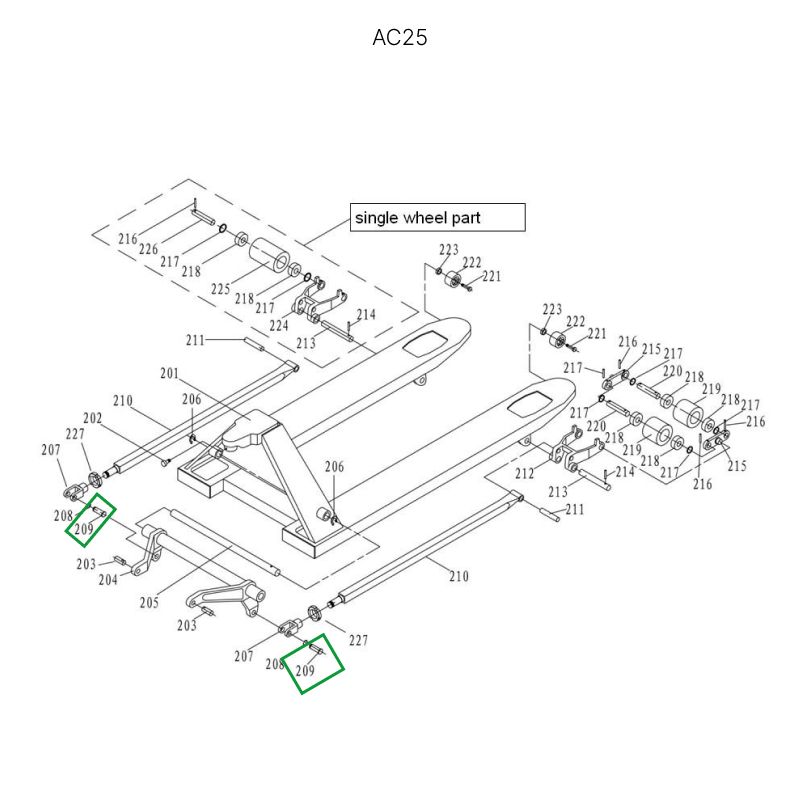 Ось крепления углового рычага к подвильной тяге для гидравлических тележек DF25