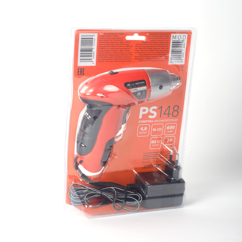 Отвертка аккумуляторная PATRIOT PS 148, 4,8V, блистер + комплект бит