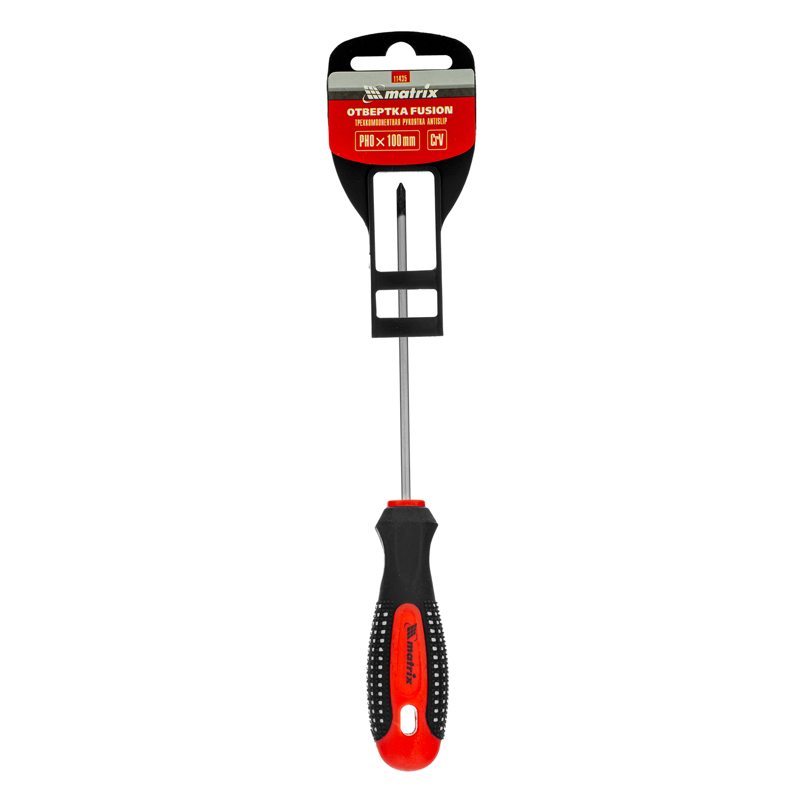 Отвертка Fusion, PH0 х 100 мм, CrV, трехкомпонентная рукоятка "Anti slip" Matrix