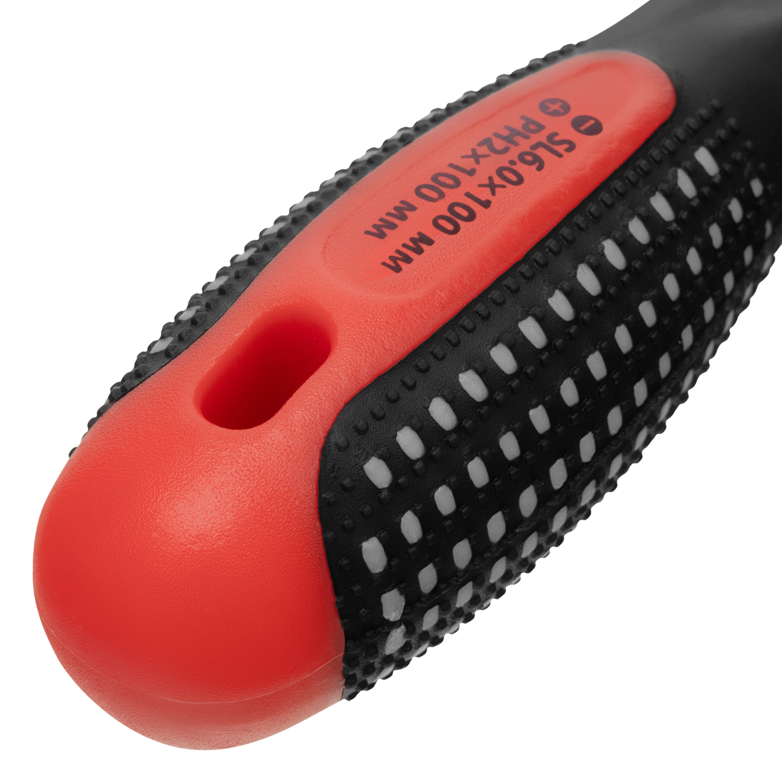 - Стержень и жало выполнены из износостойкой легированной стали CrV твердостью 50-52 HRC, что обеспечивает долгий срок службы отвертки.