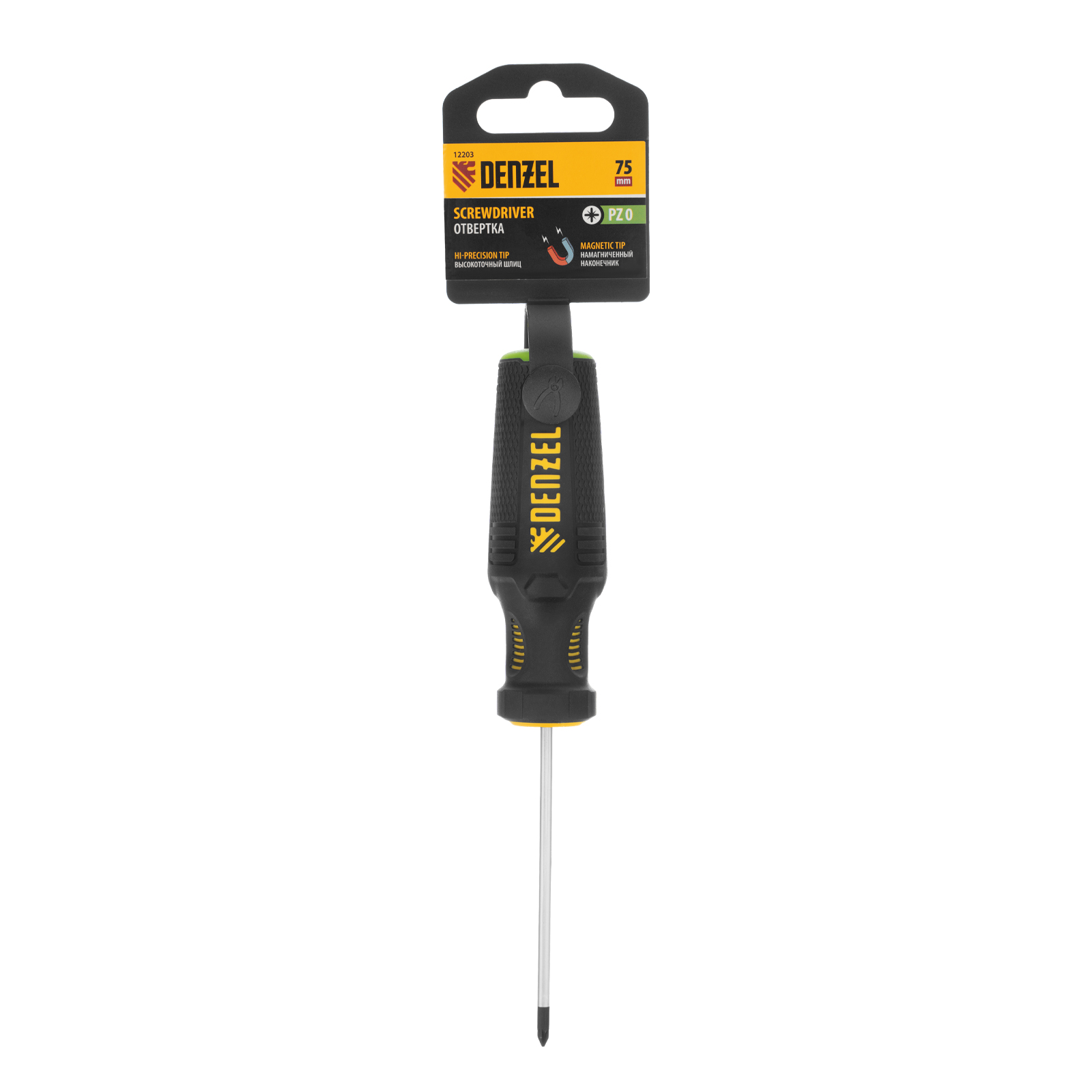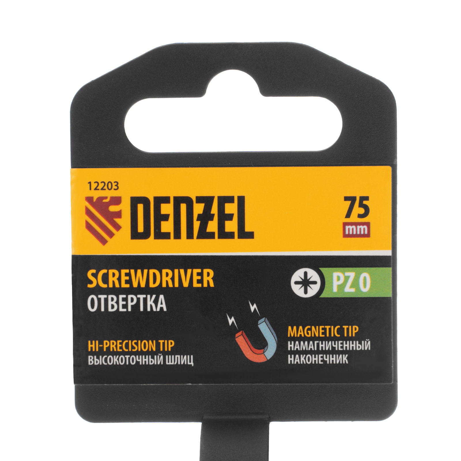 Отвертка PZ0x75 мм, CrV, трехкомпонентная рукоятка Denzel