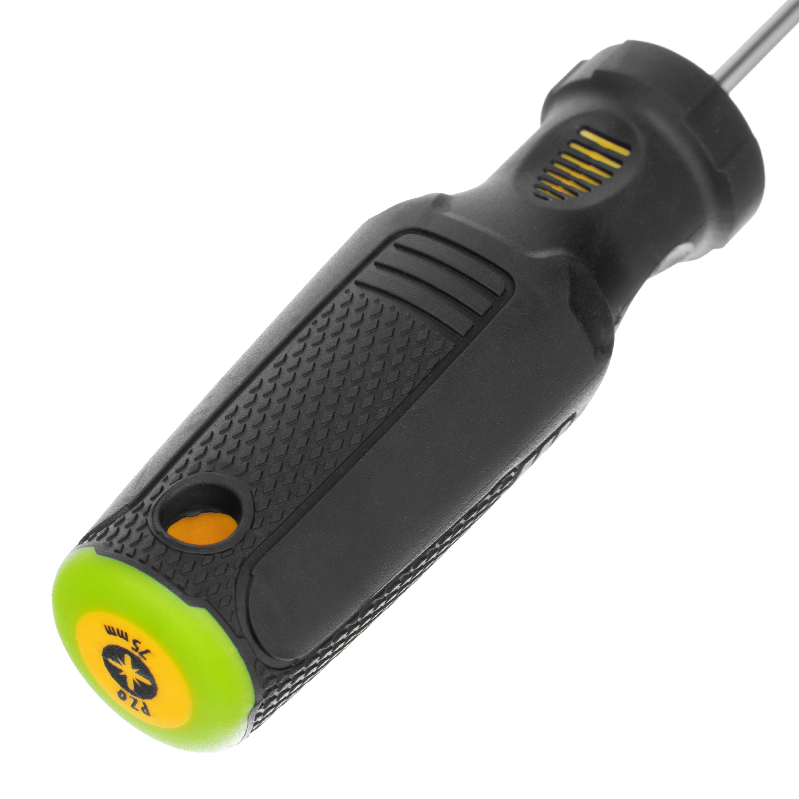 - Удобное хранение — отверстие в рукоятке позволяет подвешивать отвертку на крючок или скобу.