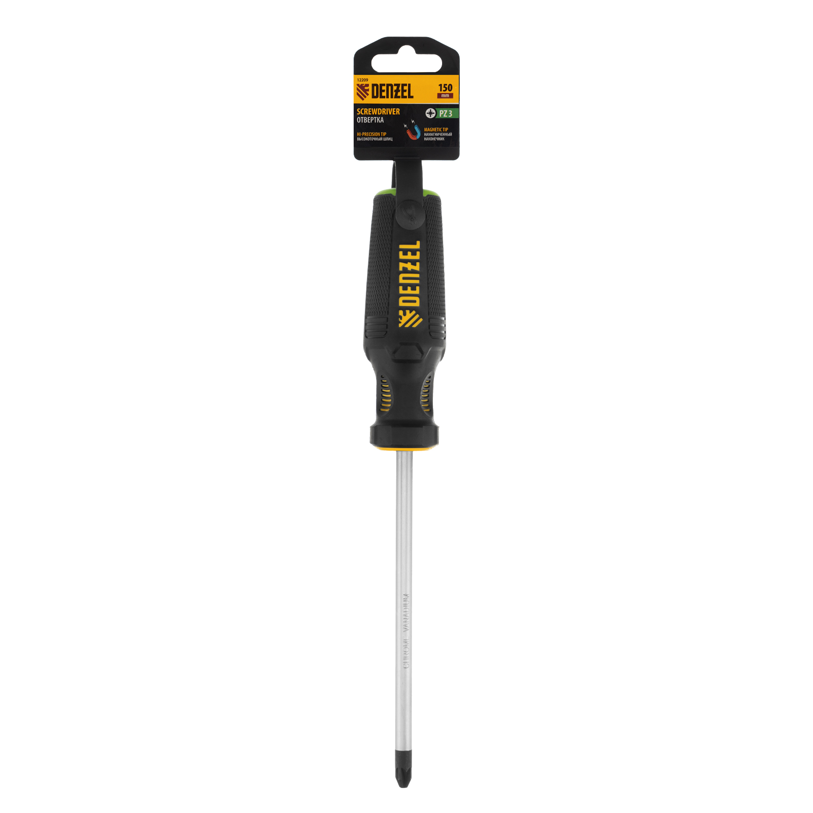 Отвертка PZ3x150 мм, CrV, трехкомпонентная рукоятка Denzel