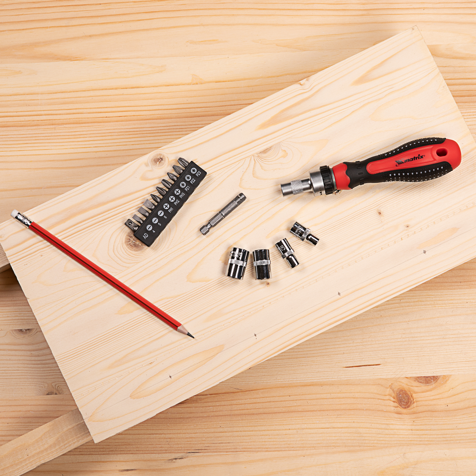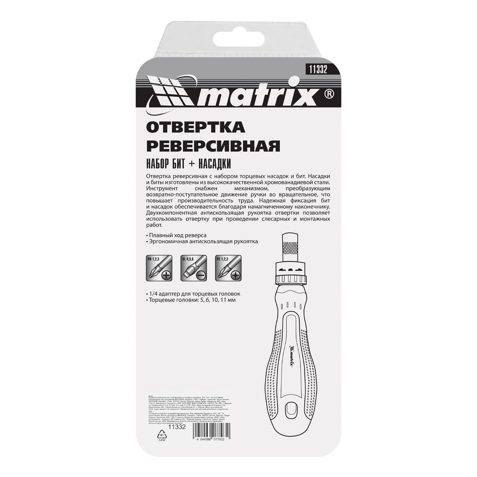 Отвертка реверсивная с набором бит и насадок торцевых, CrV, 1/4, 16 шт Matrix |