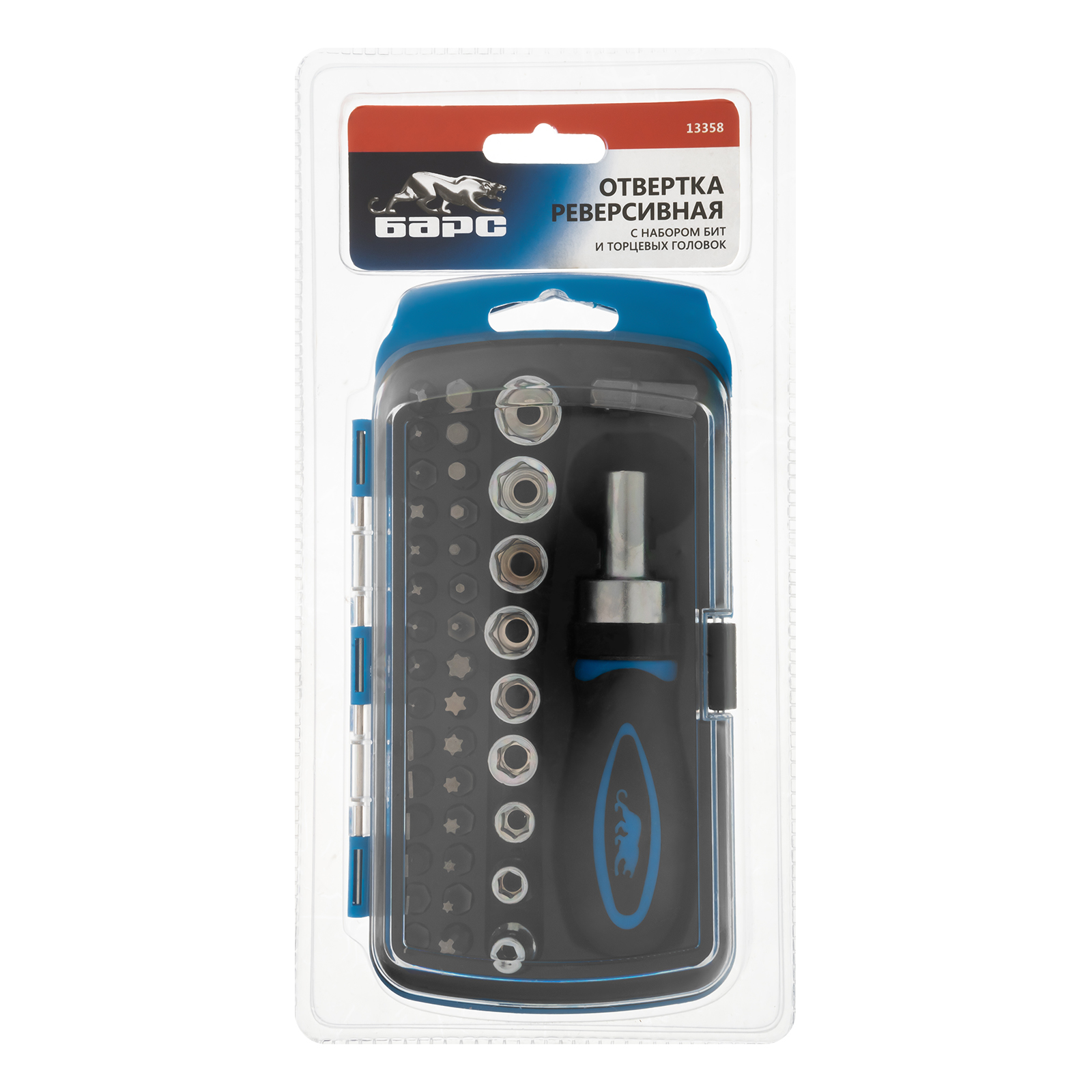 Отвертка реверсивная с набором бит и торцевыми головками, 41 шт Барс