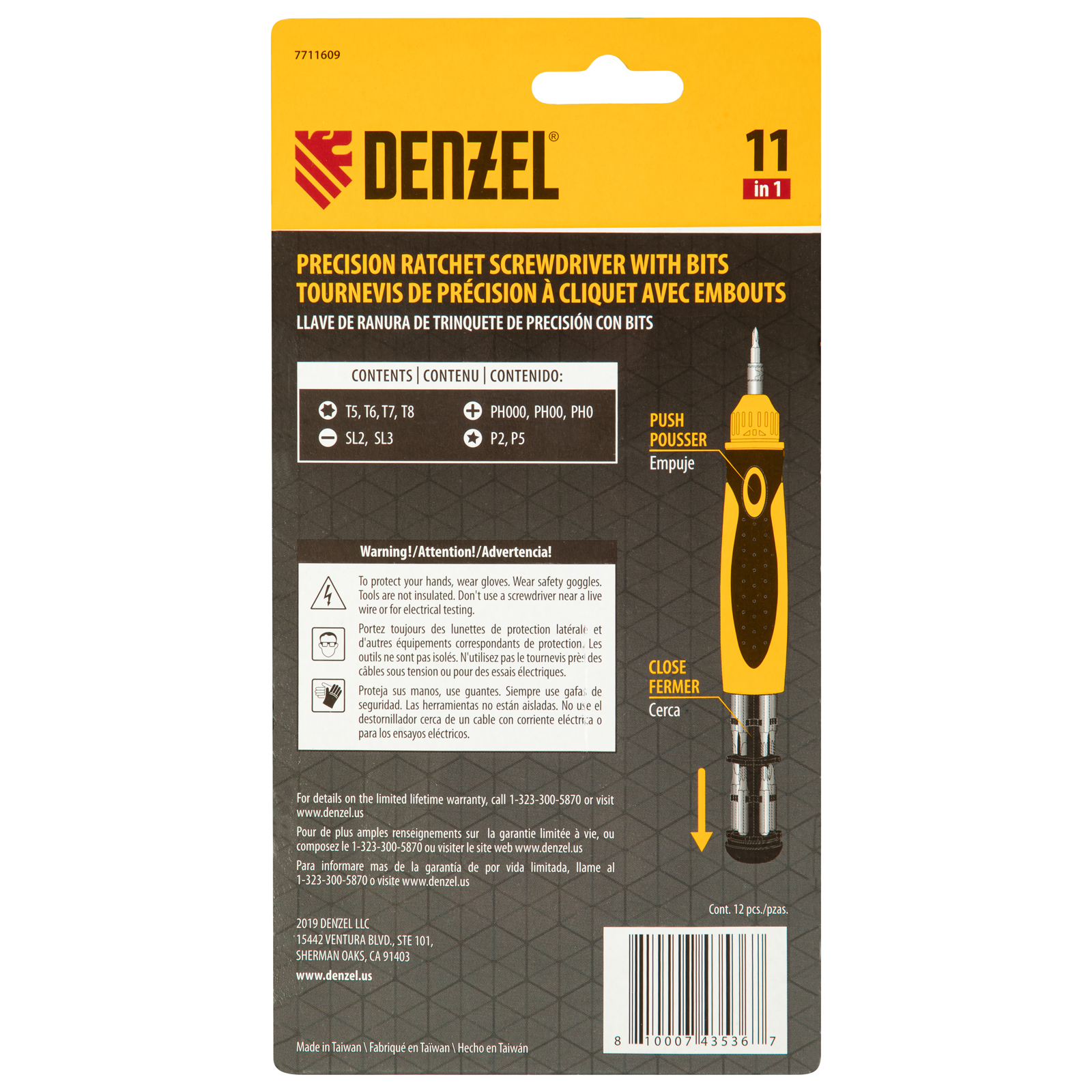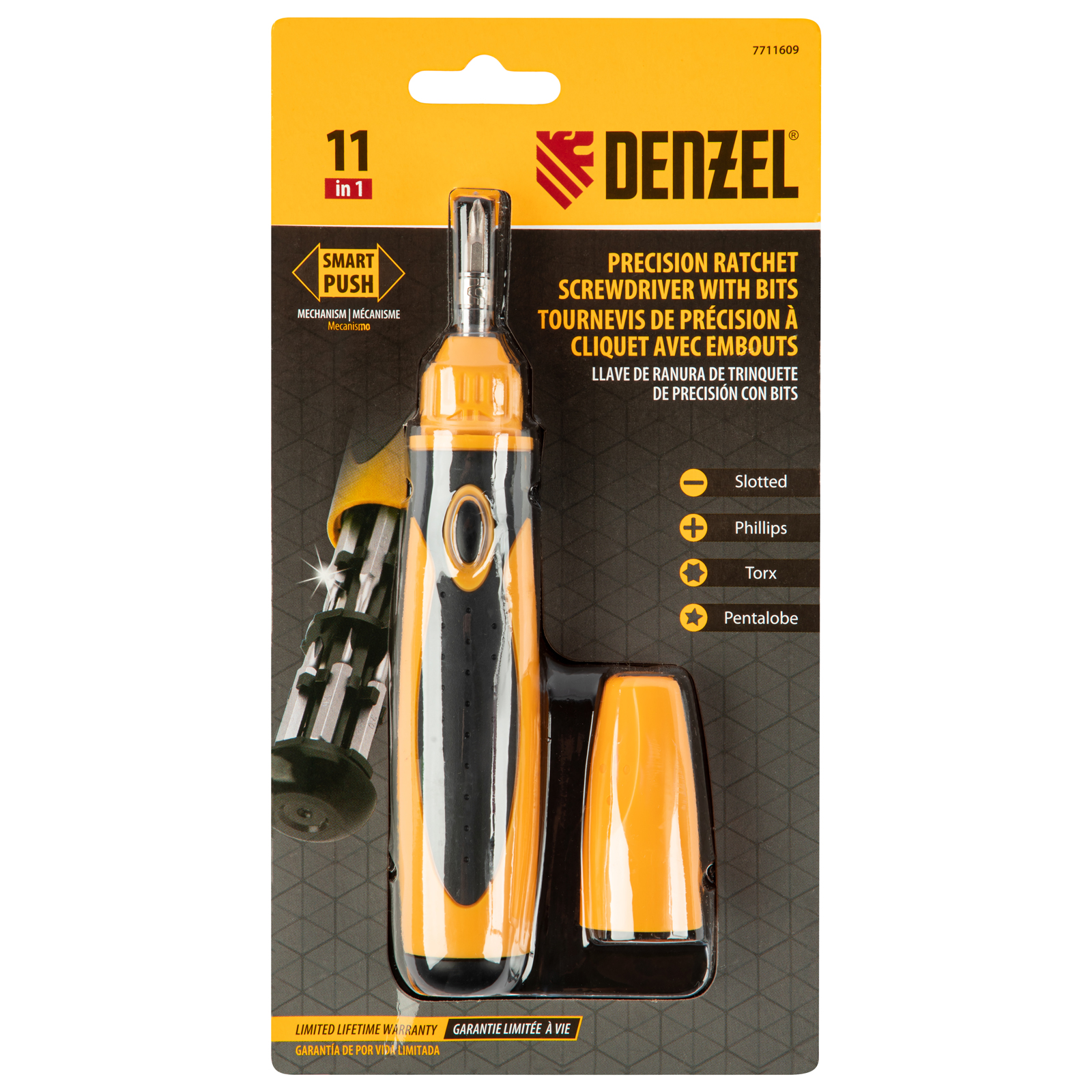 Отвертка реверсивная, механизм SmartPush mini 11 шт, CrMo Denzel