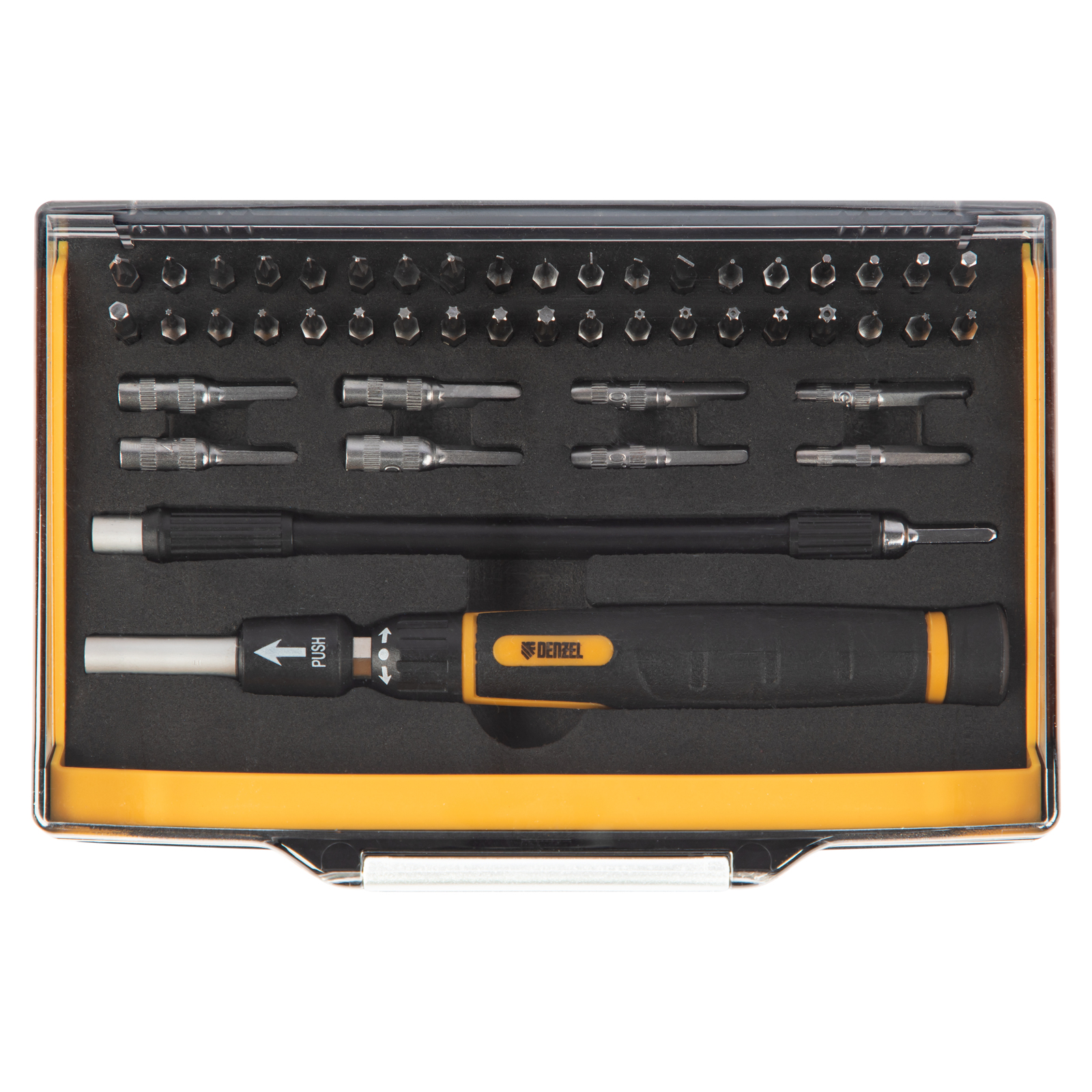 Отвертка с набором бит и торцевых головок для точных работ, гибкий привод, 48 шт, CrMo Denzel