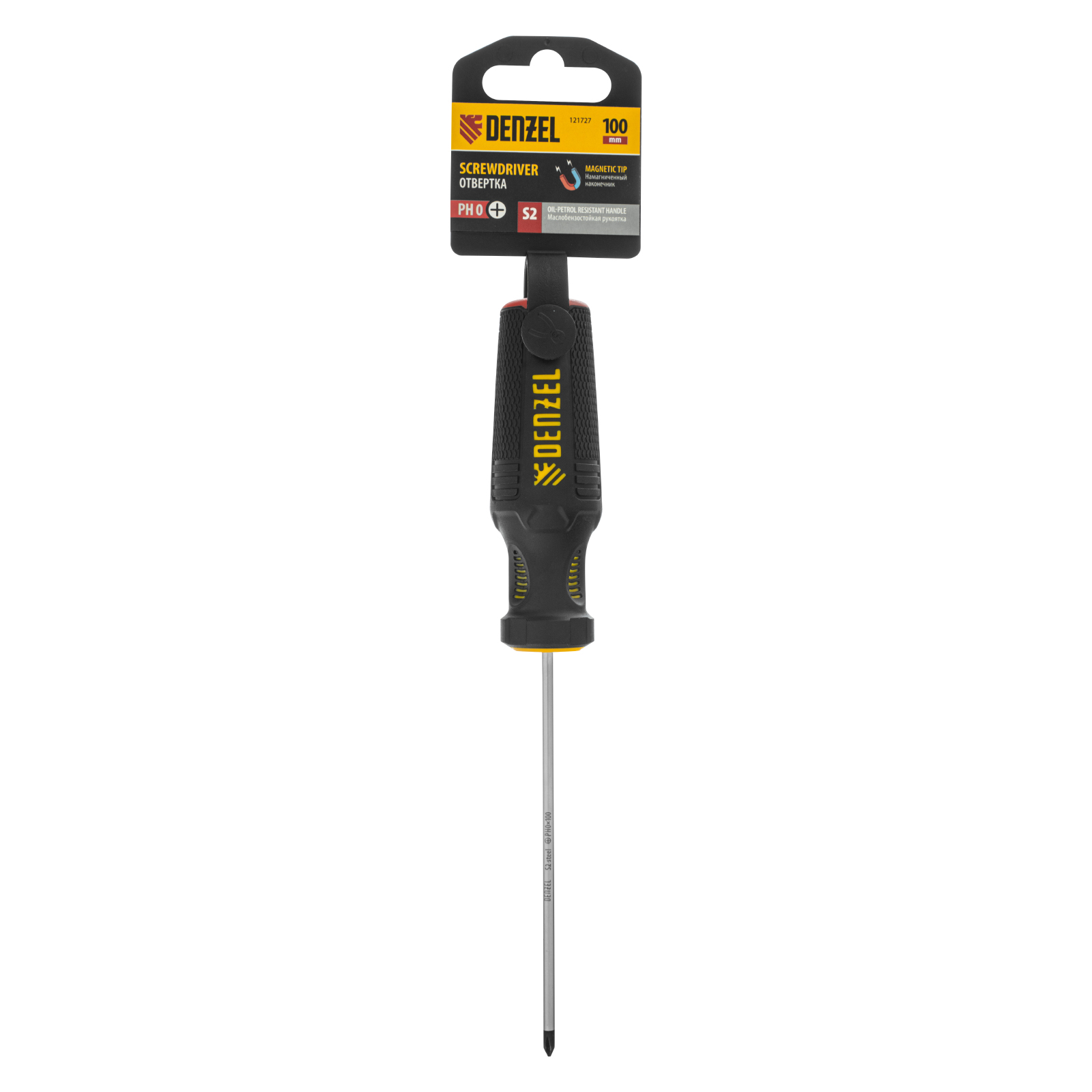 Отвертка, PH0х100 мм, S2, 3к рукоятка Denzel