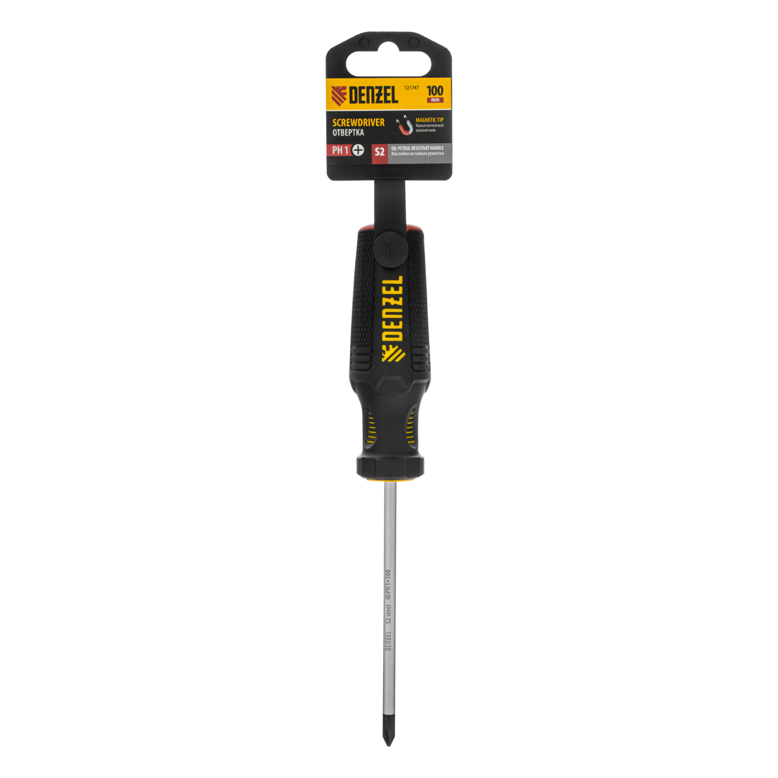 Отвертка, PH1х100 мм, S2, 3к рукоятка Denzel |
