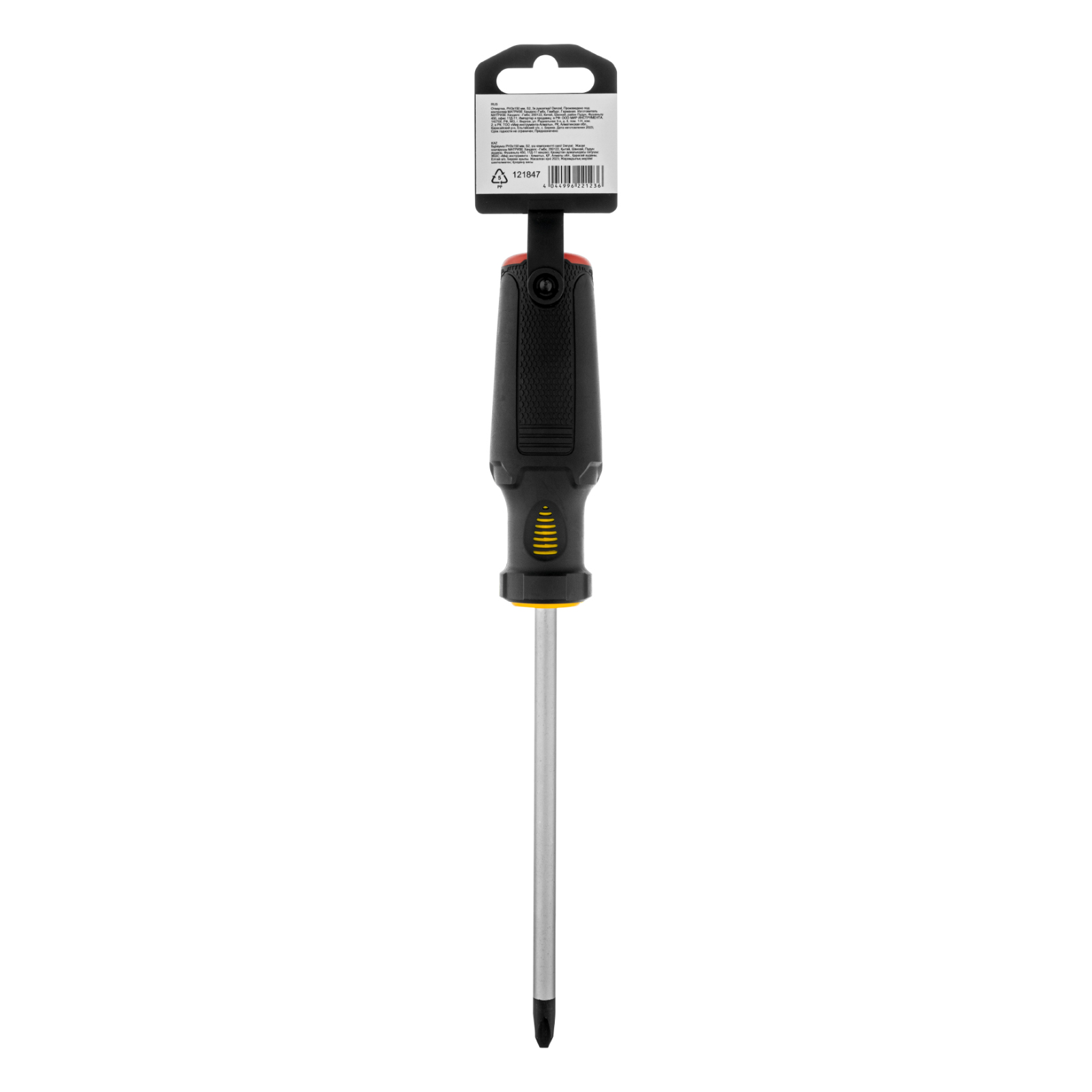 Отвертка Denzel 121847 с трехкомпонентной рукояткой, со стержнем из стали S2, длиной 150 мм, предназначена для закручивания и откручивания резьбового крепежа типа PH3. Высокоточный намагниченный шлиц избавляет мастера от необходимости придерживать винт или саморез рукой. Отвертка рекомендована для профессионального использования.