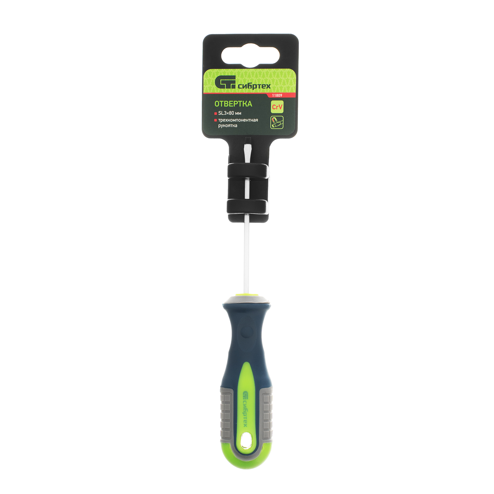 Отвертка, SL3 х 80 мм, CrV, трехкомпонентная рукоятка Сибртех