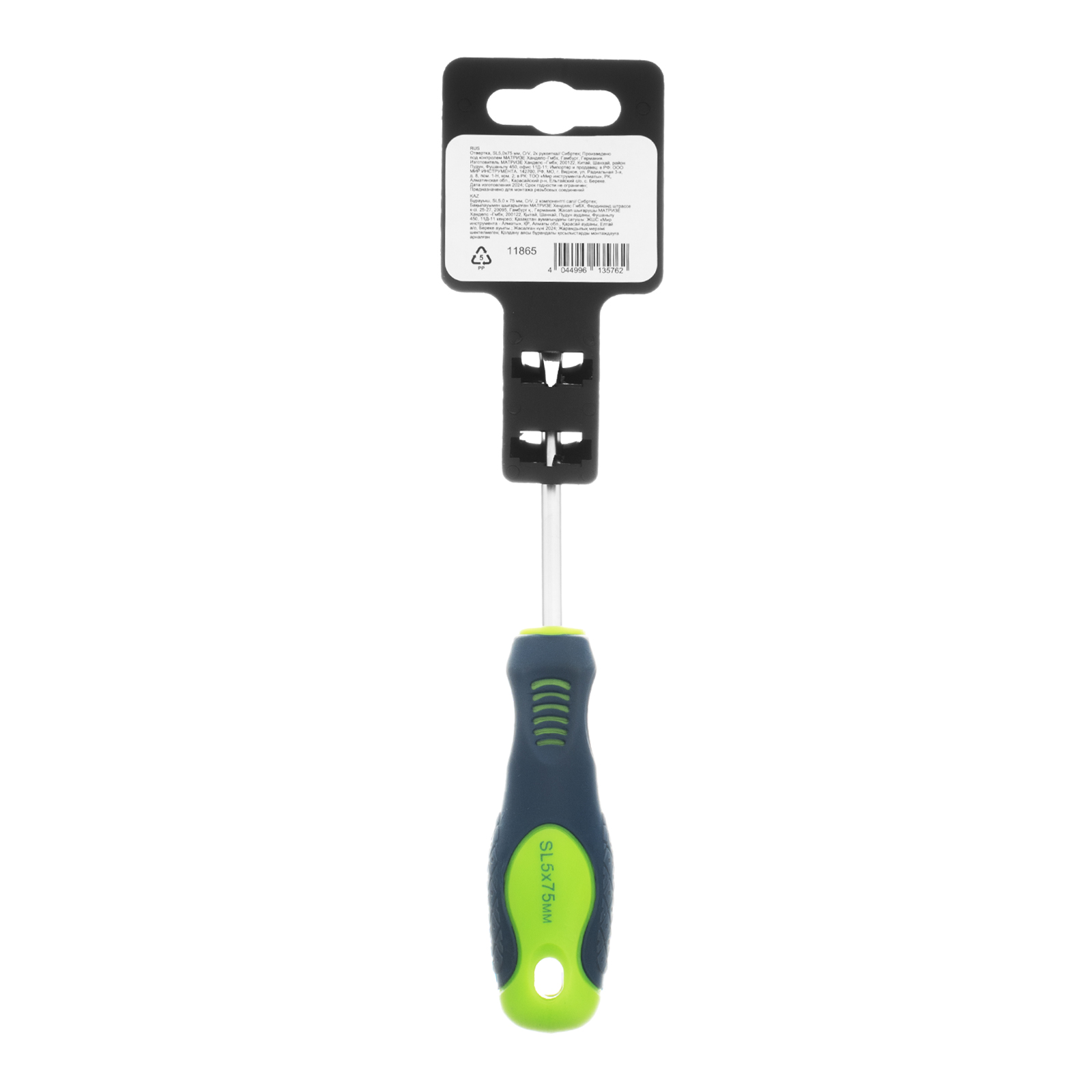 Отвертка Сибртех 11865, SL5,0 х 75 мм, из стали CrV, с 2-х компонентной рукояткой, подходит для работ, не требующих большого усилия затяжки. С ее помощью осуществляется монтаж/демонтаж крепежных элементов типа Slotted. Отвертка оснащена стержнем длиной 75 мм для работ в углублениях и на поверхностях. Инструмент пригодится для полупрофессионального применения.