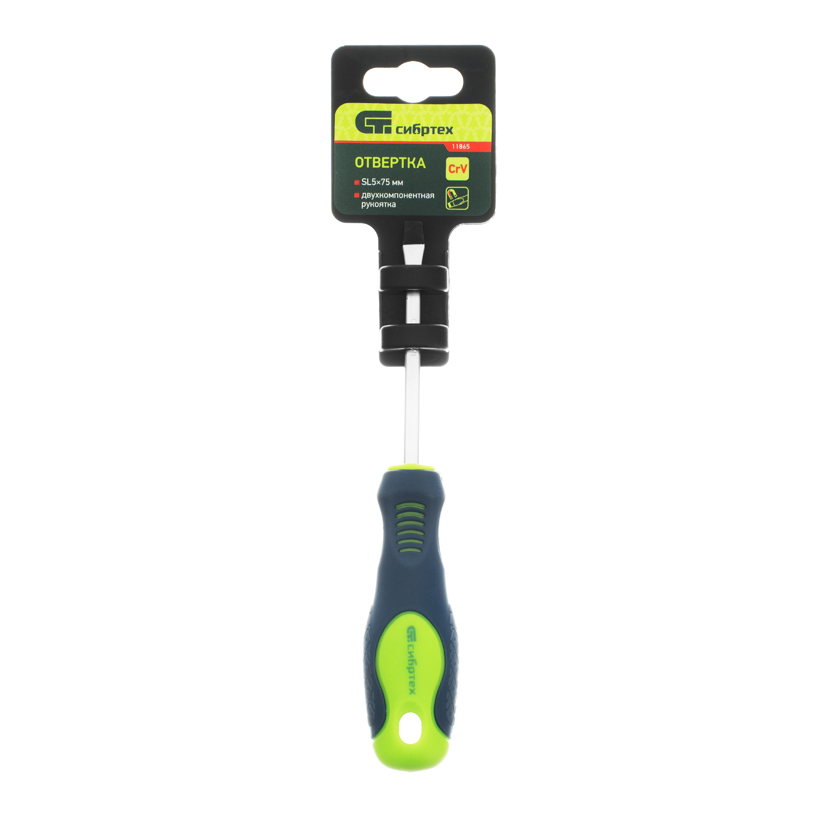Отвертка, SL5 х 75 мм, CrV, двухкомпонентная рукоятка Сибртех