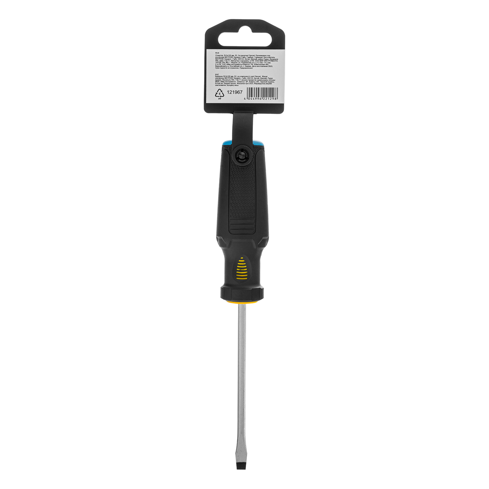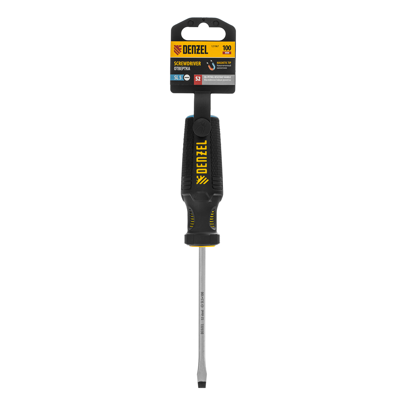 Отвертка, SL5x100 мм, S2, 3к рукоятка Denzel