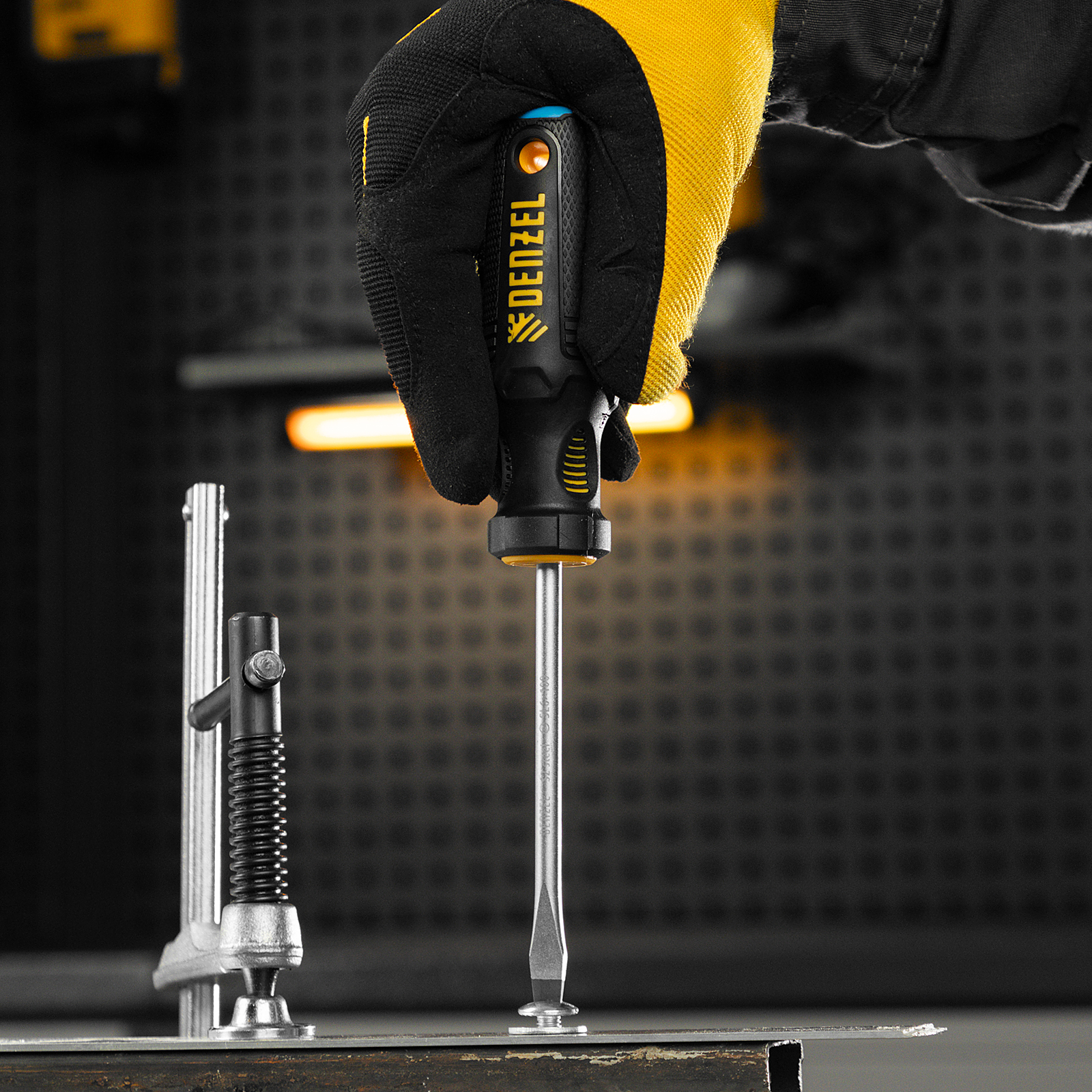 Отвертка, SL6x100 мм, S2, 3к рукоятка Denzel