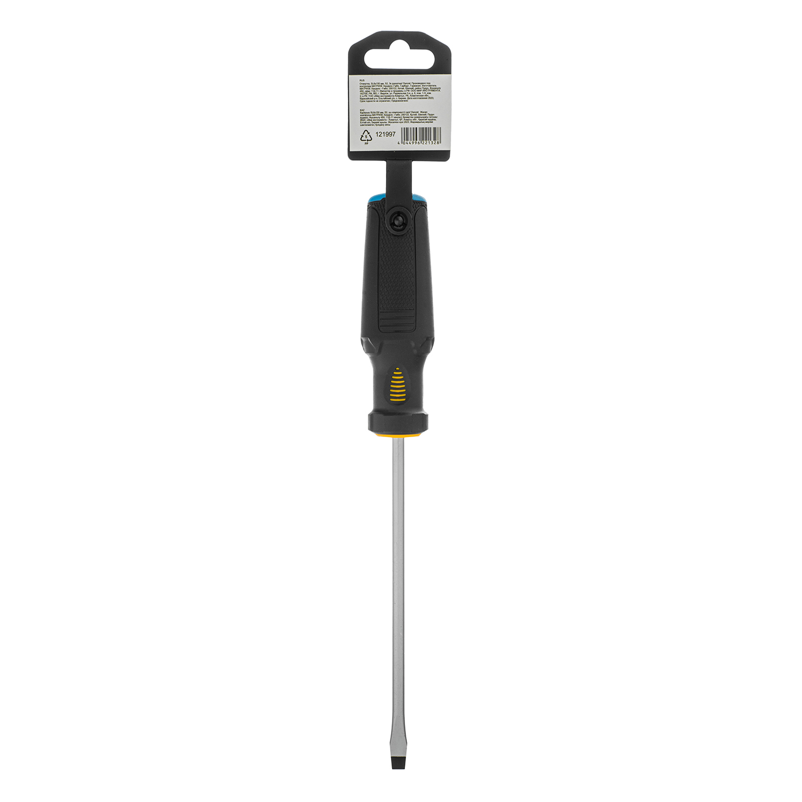 Отвертка Denzel 121997 с трехкомпонентной рукояткой, со стержнем из стали S2, длиной 150 мм, предназначена для монтажа и демонтажа винтов и саморезов с прямым шлицем SL6. Высокоточный намагниченный шлиц крепко фиксируется в головке крепежа. Отвертка выдерживает интенсивное применение, предназначена для выполнения профессиональных ремонтных и монтажных работ.