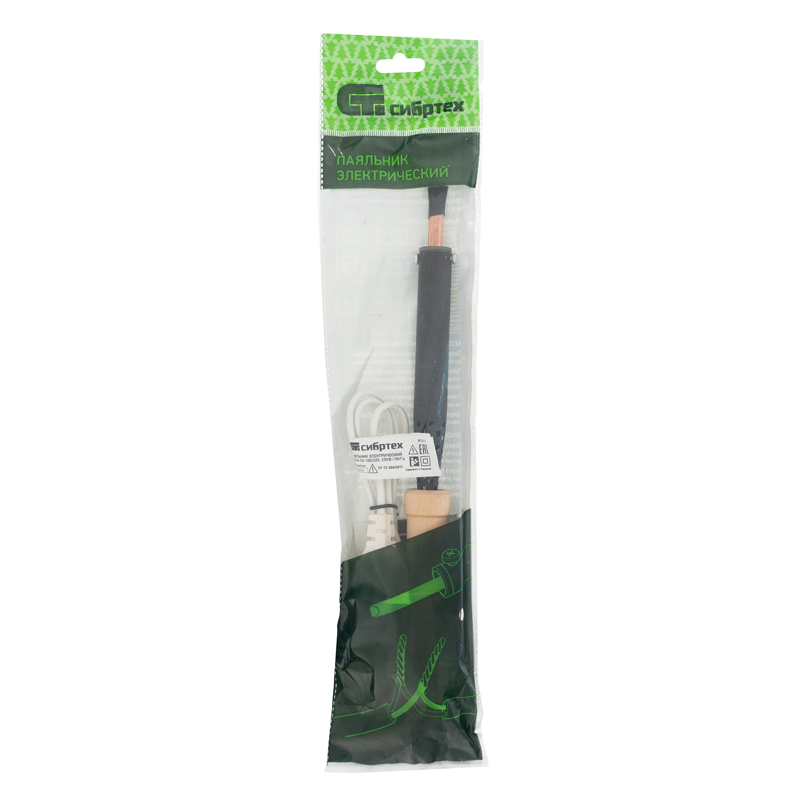 Паяльник электрический ЭПСН-03-100/220, деревянная ручка, Сибртех
