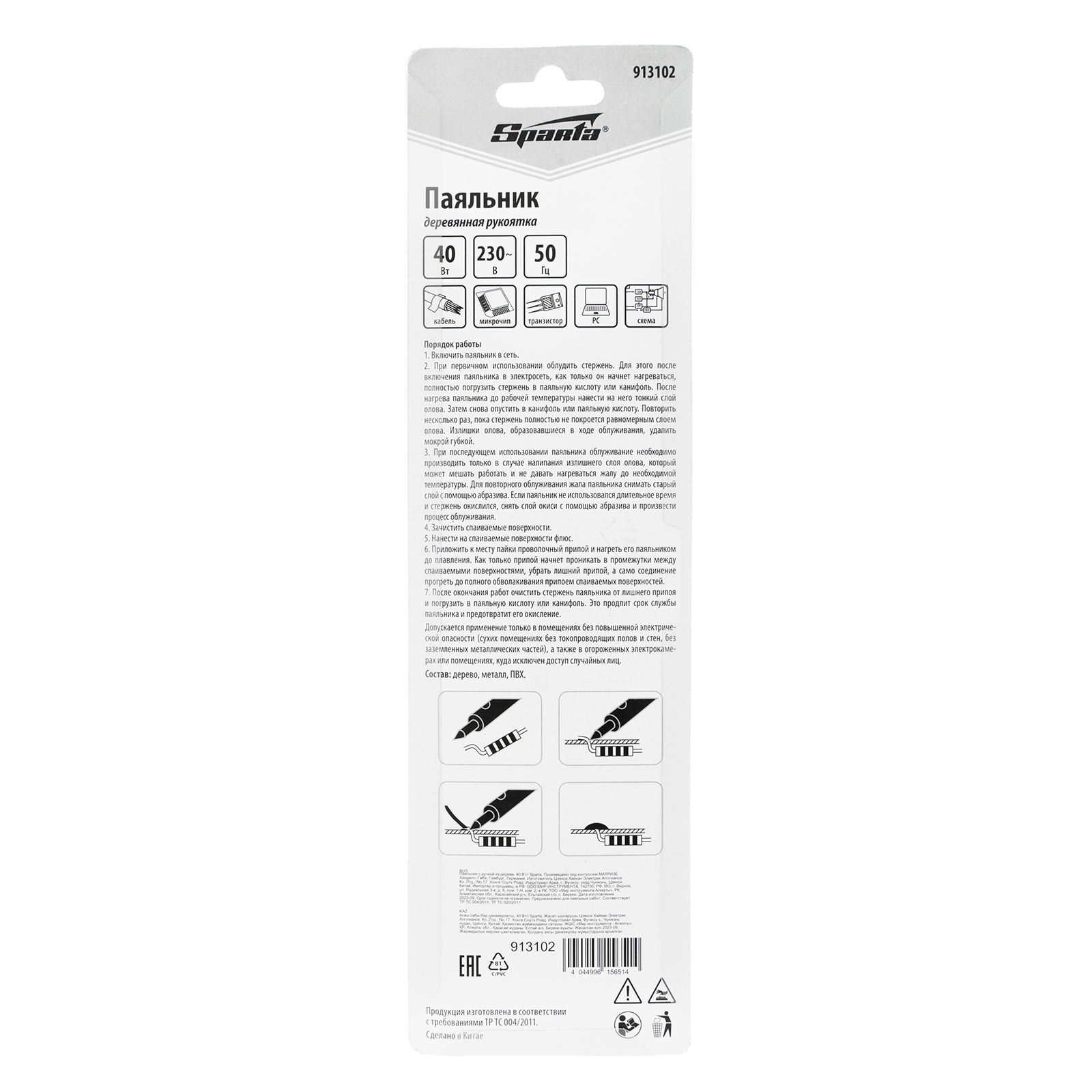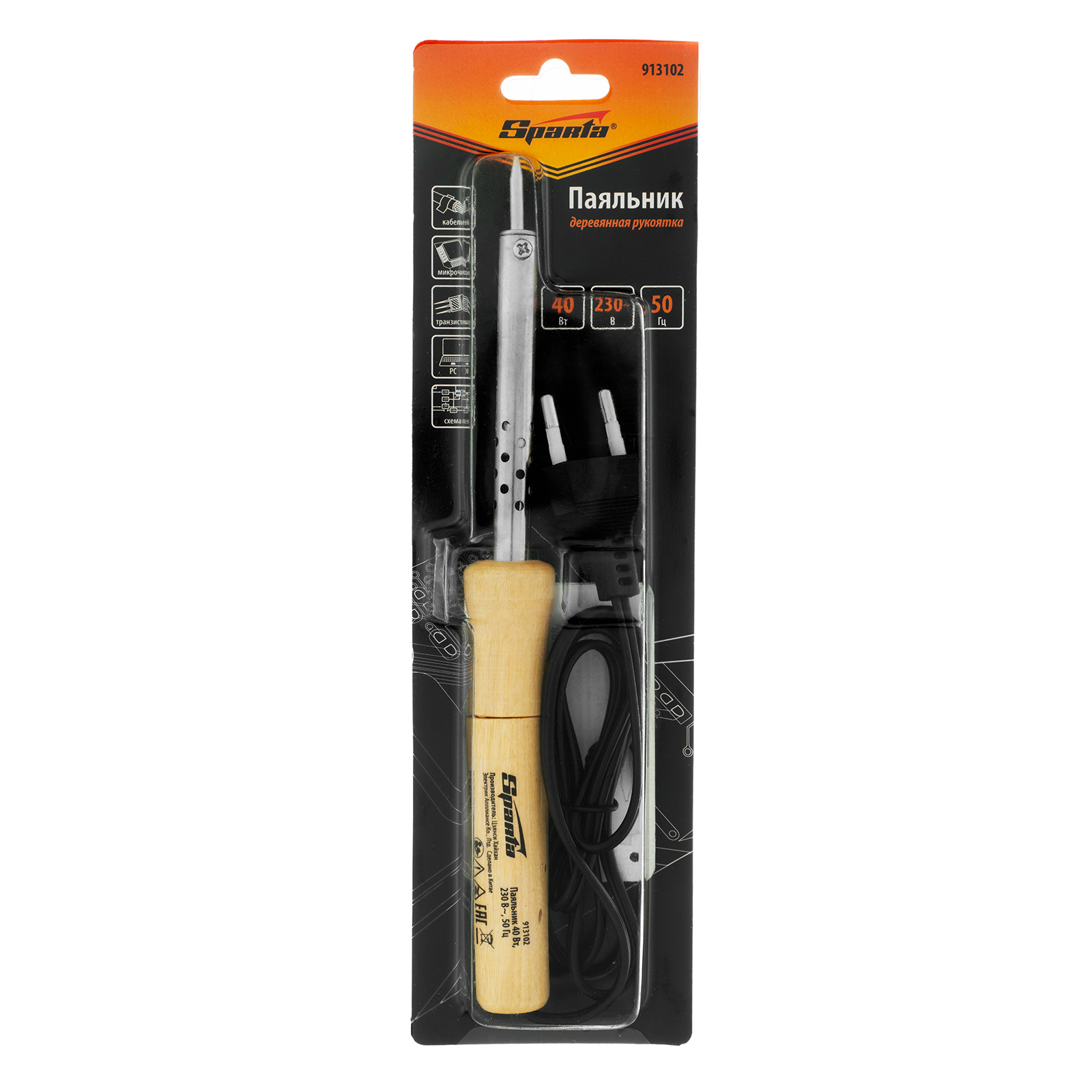 Паяльник с ручкой из дерева, 40 Вт, 220 В Sparta