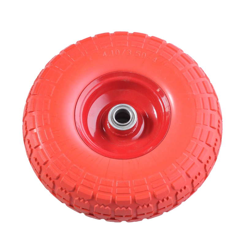 Грузоподъемность данного пенополиуретанового колеса составляет 150 кг, диаметр — 260 мм. Модель не требует подкачки и дополнительного обслуживания, не подвержена расслоению, не оставляет следов. Подходит для строительных и садовых тачек.
