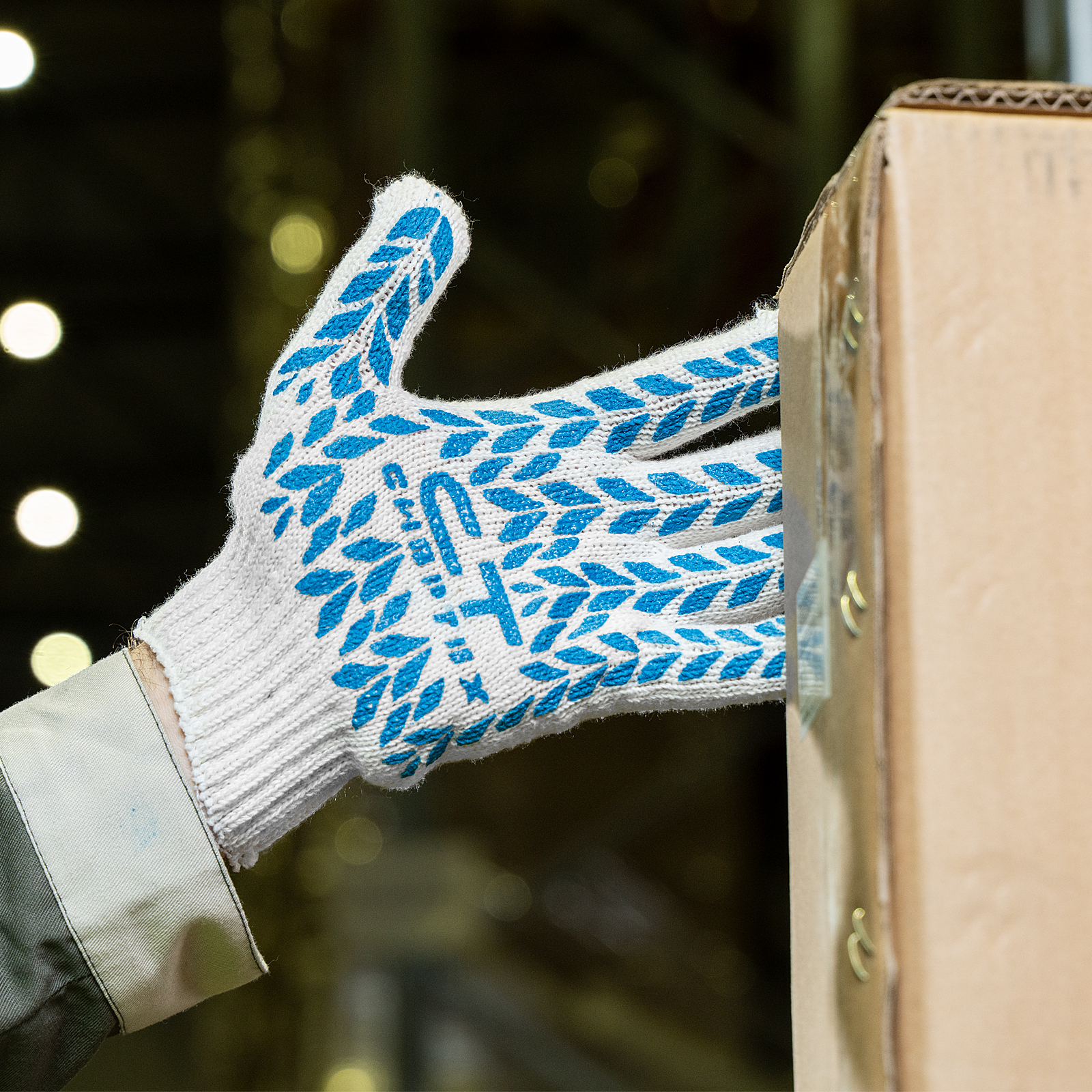 - На ладонной части перчатки имеется ПВХ-покрытие, обеспечивающее надежный захват различных инструментов и мелких деталей.