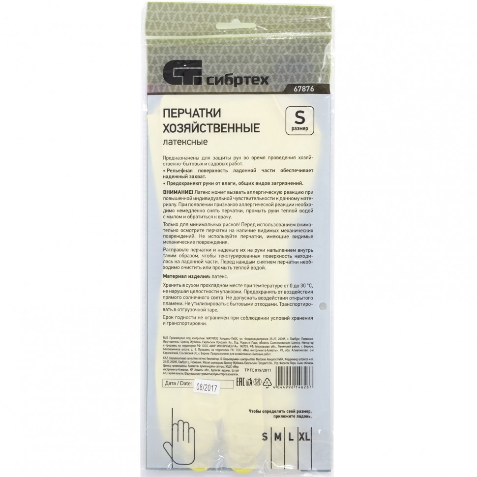 Перчатки хозяйственные латексные, XL, Сибртех