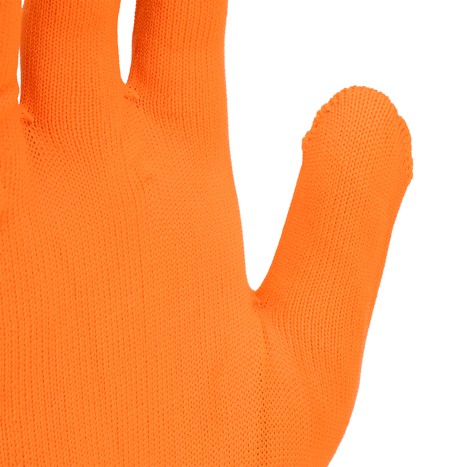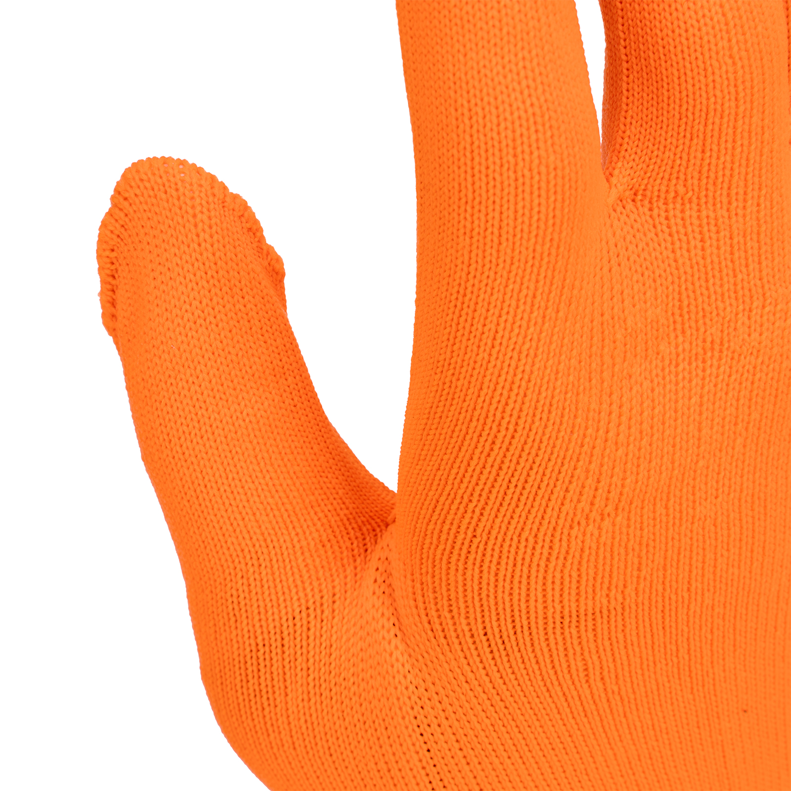 Оранжевые перчатки 67840 из нейлона, 13 класса вязки, размера XL, надежно защищают руки от мозолей, ссадин, царапин и порезов. Тонкая ткань обеспечивает высокую тактильную чувствительность пальцев, поэтому перчатки подходят для работы с мелкими предметами. Будут полезны во время строительства, ремонта, сборочных работ, пригодятся также в быту.