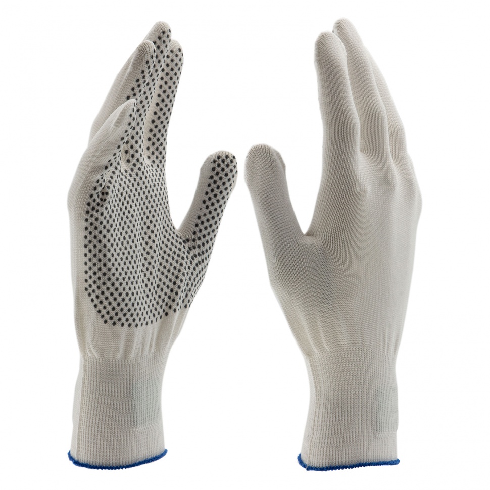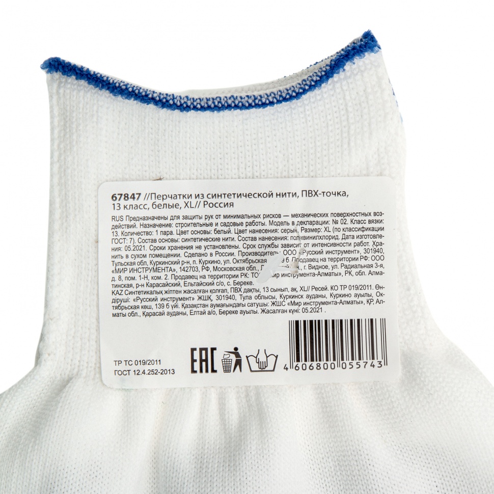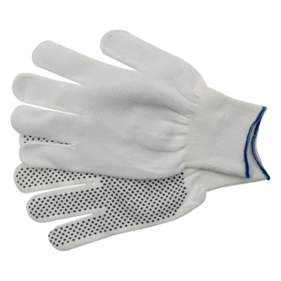 Перчатки Нейлон, ПВХ точка, 13 класс, белые, XL Россия |