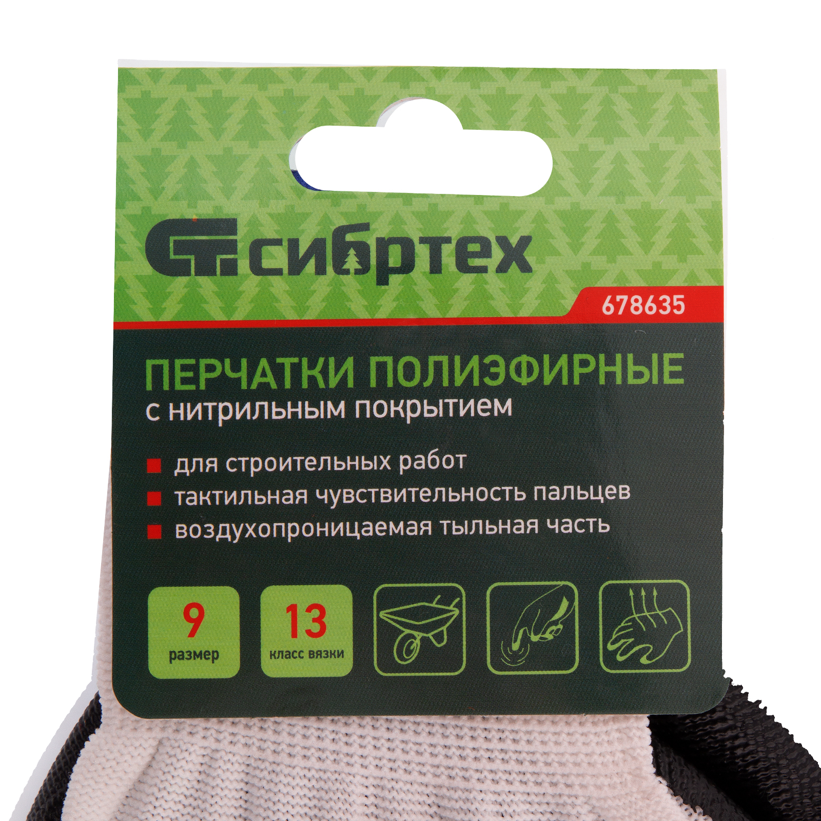 Перчатки полиэфирные с черным нитрильным покрытием, размер 9, 13 класс вязки Сибртех
