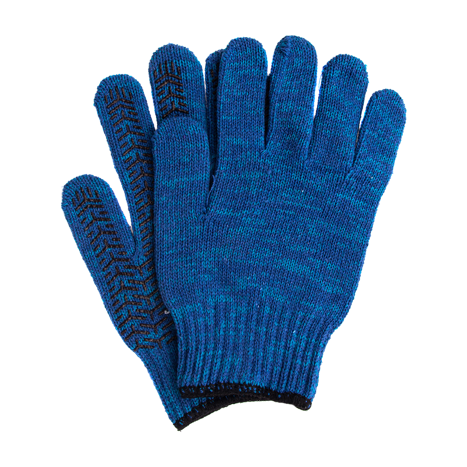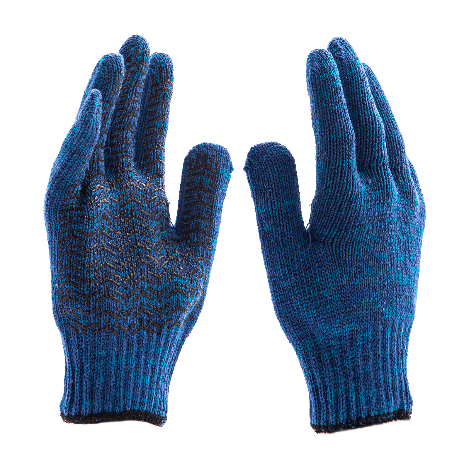 Усиленные трикотажные перчатки Сибртех 68183, синие, с гелевым ПВХ-покрытием, 7 класса вязки, надевают на руки при выполнении тяжелых строительных, монтажных, ремонтных, сборочных и погрузо-разгрузочных работ. Толстая эластичная пряжа надежно защищает кисти рук от травм и попадания грязи, не препятствуя движениям пальцев. Нанесенный на ладонную сторону ПВХ-гель исключает скольжение и способствует надежному захвату инструментов и других предметов.