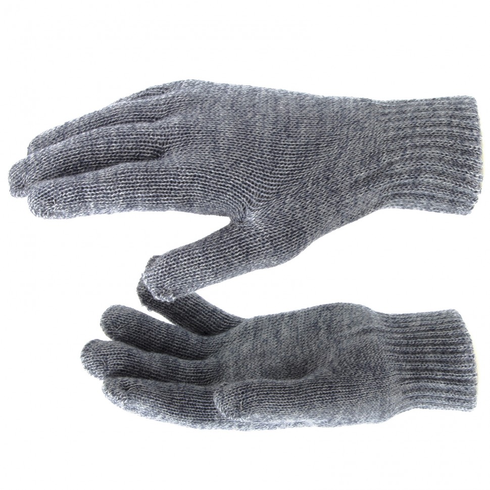 Перчатки трикотажные, акрил, двойные, серое мулине, двойная манжета Сибртех