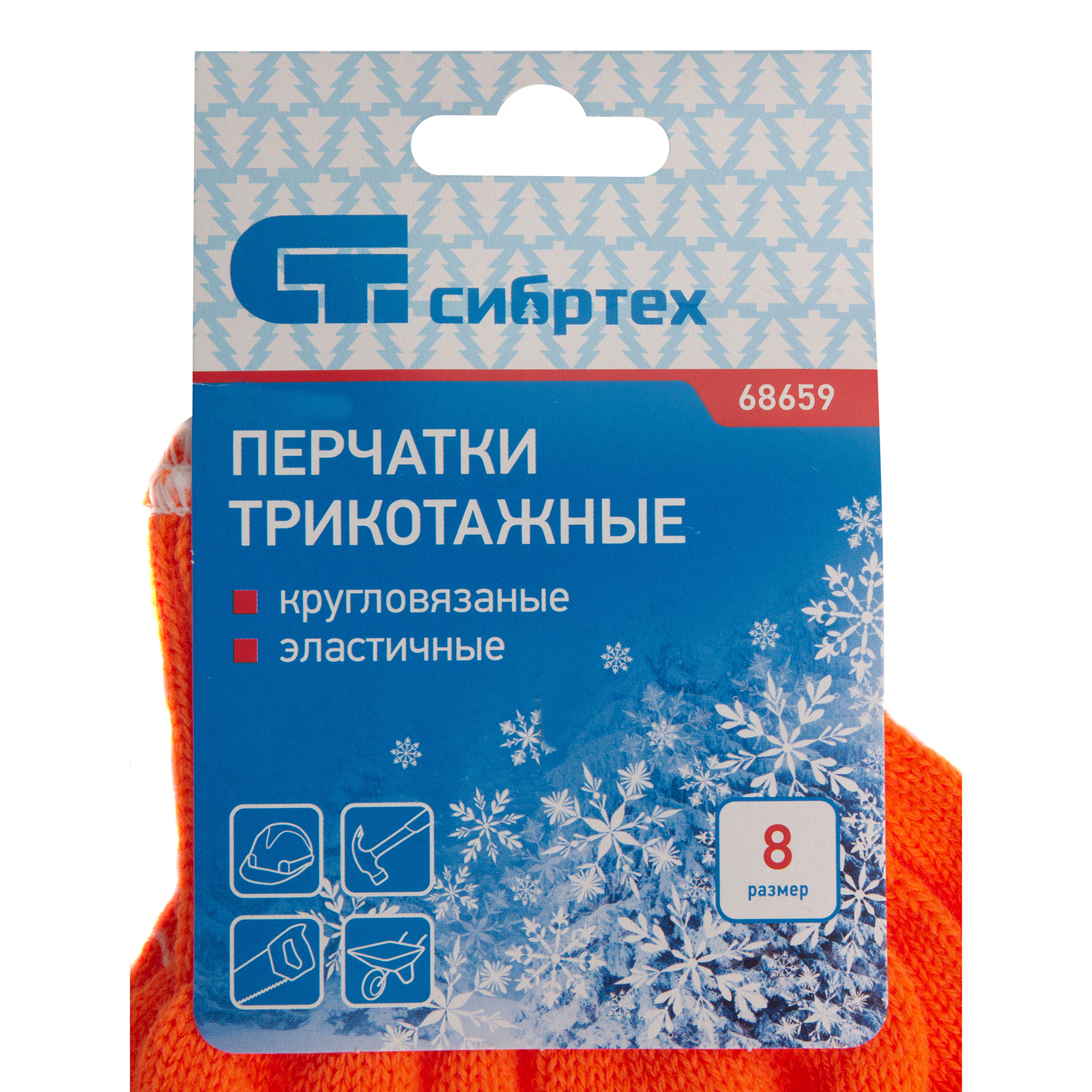 Перчатки трикотажные, акрил, оранжевый, оверлок Сибртех
