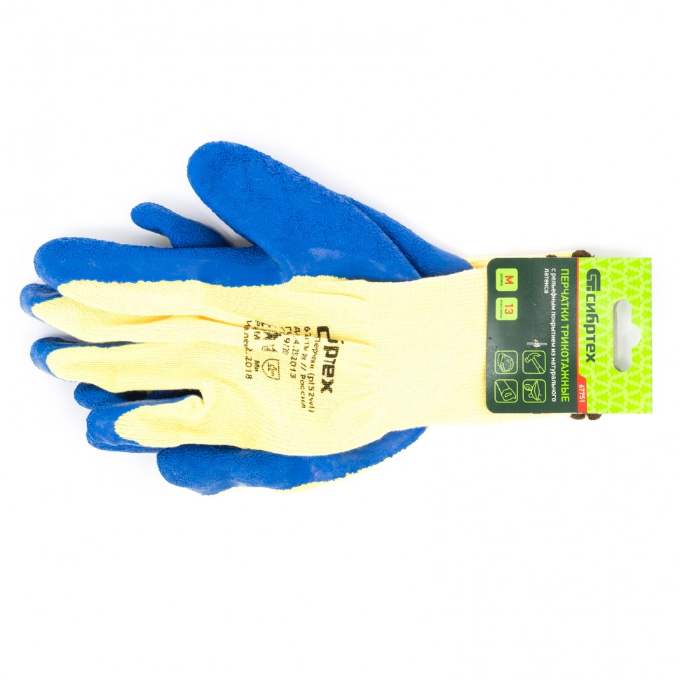 Перчатки трикотажные, полиэфирные, латексное рельефное покрытие, M Сибртех