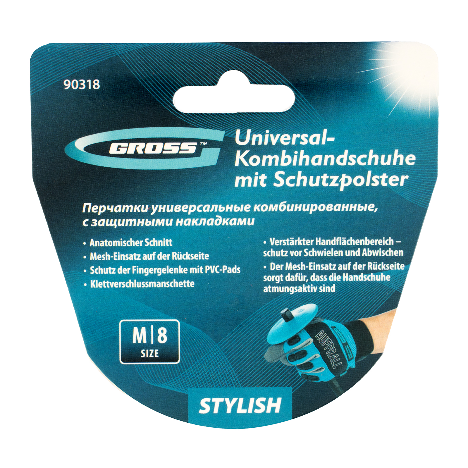 Перчатки универсальные комбинированные, с защитными накладками, STYLISH, размер M (8) Gross