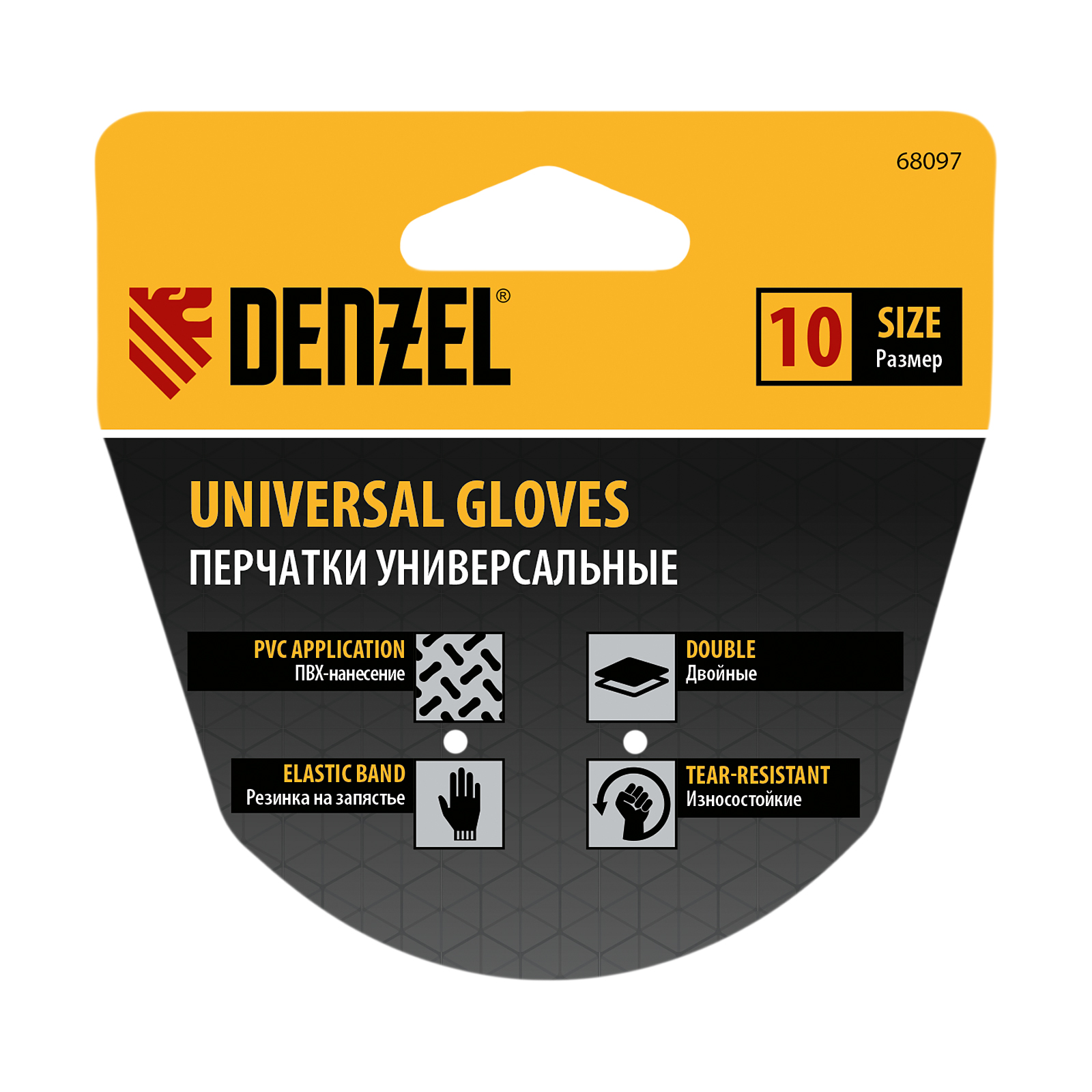 Перчатки универсальные, двойные, ПВХ нанесение, размер 10 Denzel |