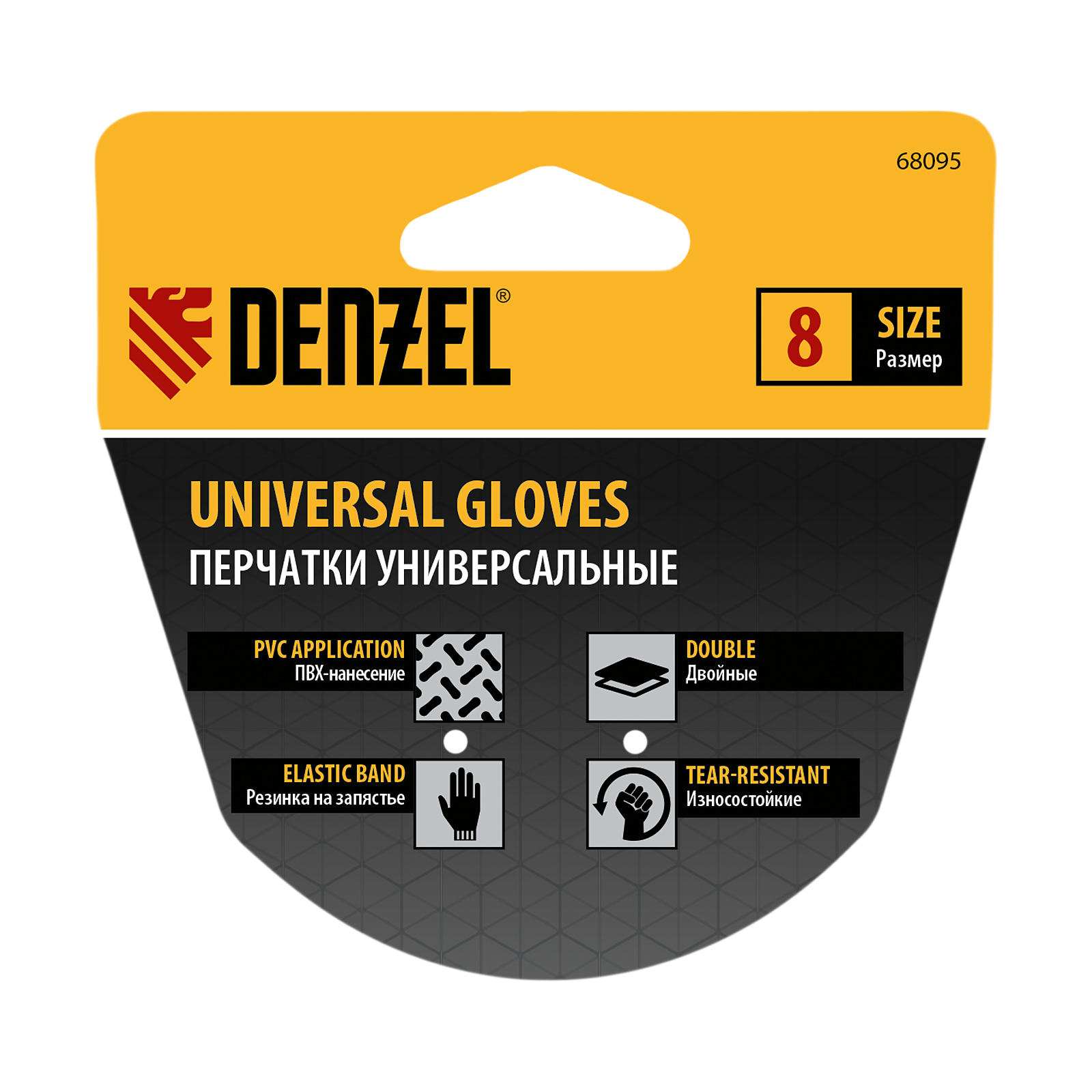 Перчатки универсальные, двойные, ПВХ нанесение, размер 8 Denzel
