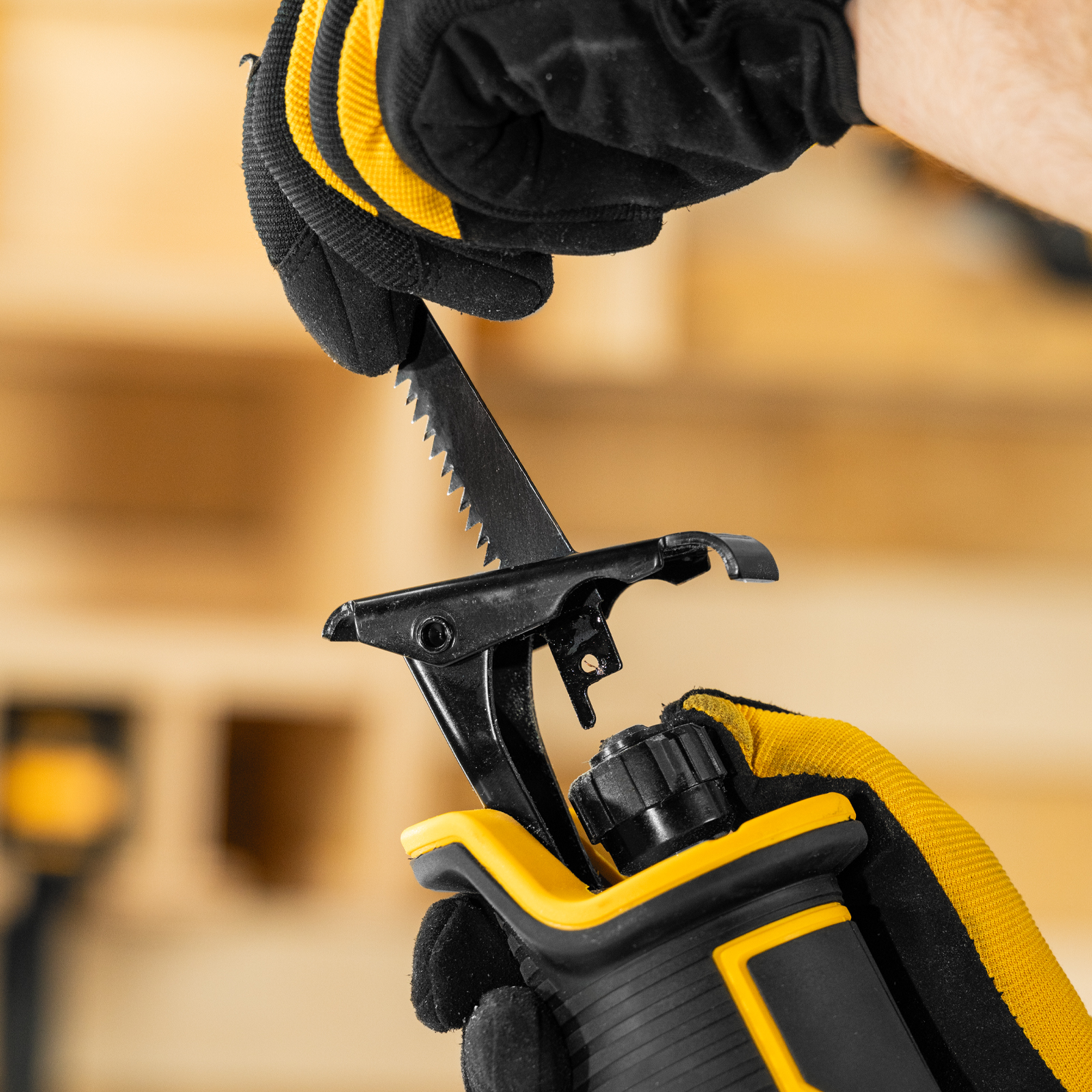 - Быстрая замена пильного полотна — благодаря быстрозажимному замку установка оснастки не занимает много времени.